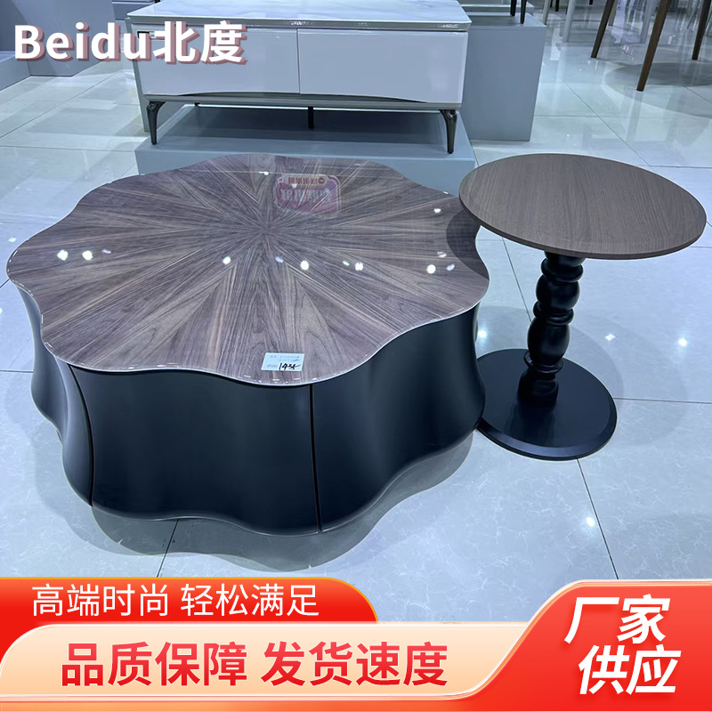 意式茶几胡桃色客厅云朵异形茶几现代简约中古风高端设计师茶几