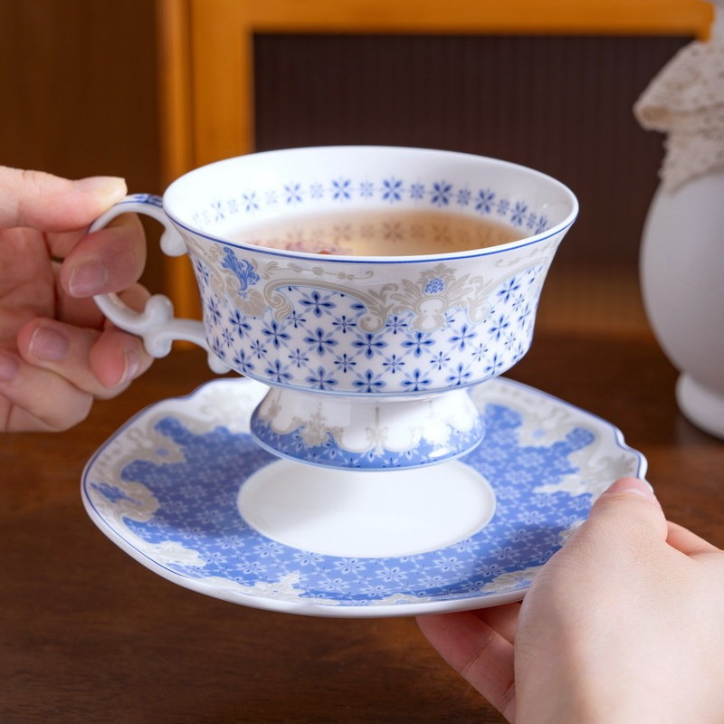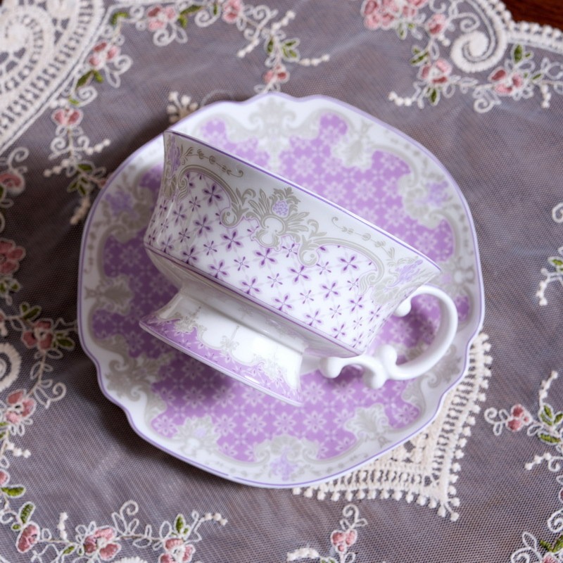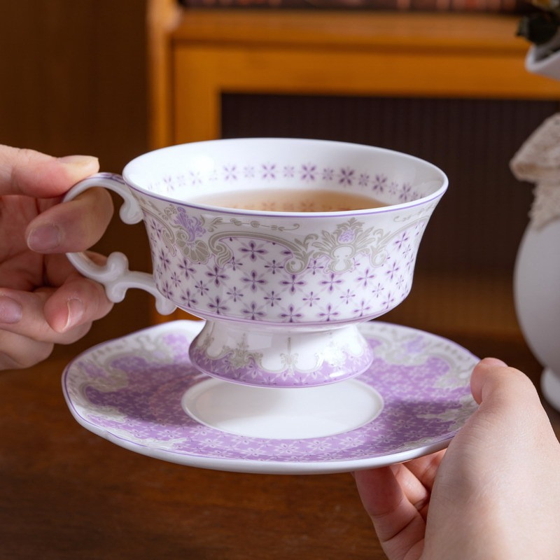 | 材质 | 瓷 | 货号 | 骨瓷中古杯碟-羽花格 |