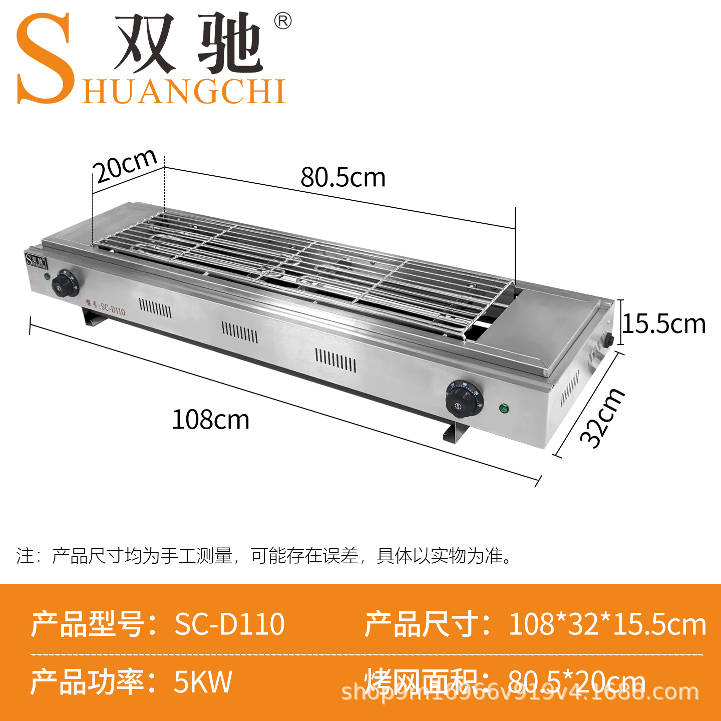 | 规格 | SC-D110双头不锈钢电热烧烤炉(温控) | 规格 | SC-DH110双头喷涂电热烧烤炉(温控) |