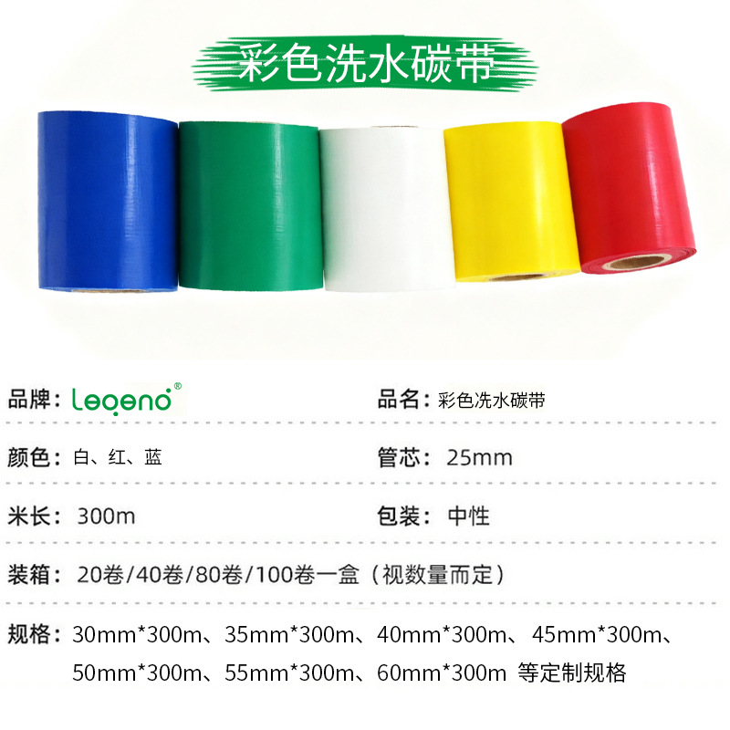 | 颜色 | 【耐高温耐水洗】白色洗水碳带50mm*300m | 颜色 | 【耐高温耐水洗】白色洗水碳带55mm*300m |