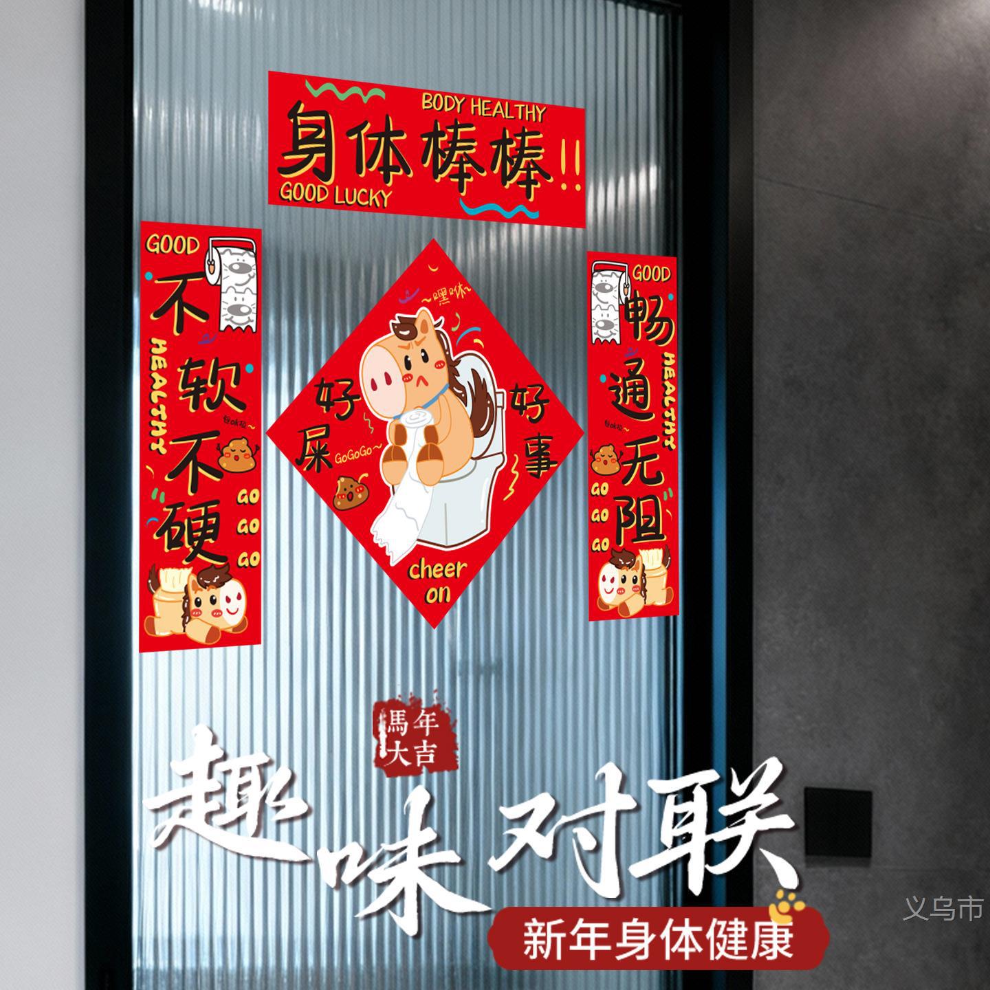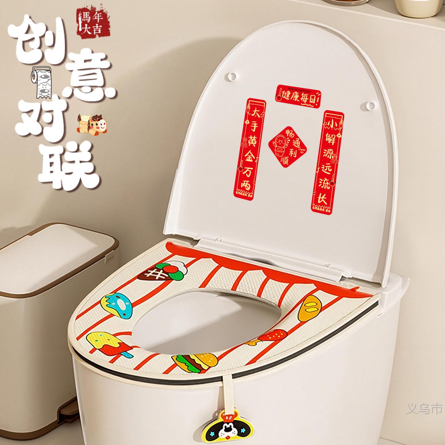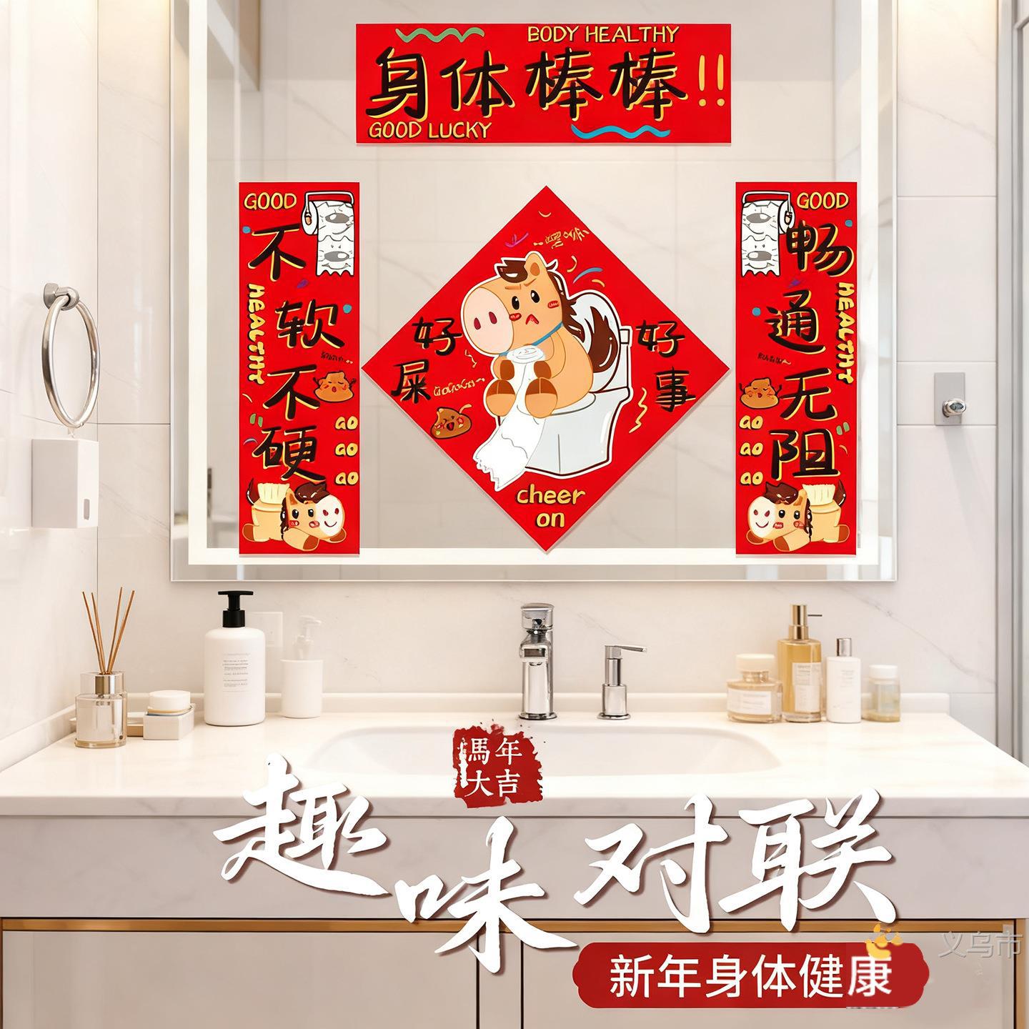 马年对联2026厕所卫生间春节过年创意新年喜庆场马桶贴装饰雨哈哈