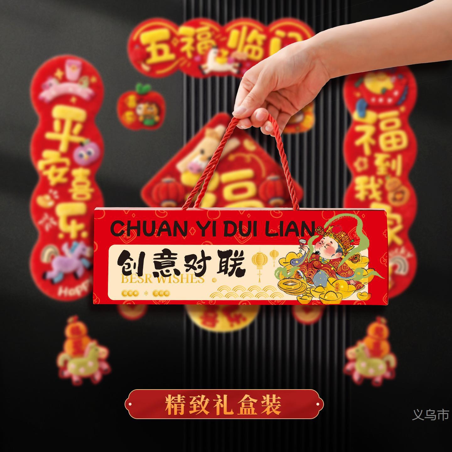 尺寸【5D毛绒效果】新年快乐┊磁吸对联(11件套)-礼盒装