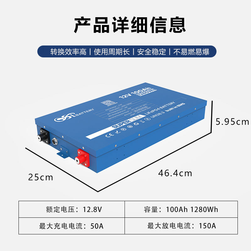12V100Ah锂电池房车露营磷酸铁锂新款足功率KC认证电池锂电池组