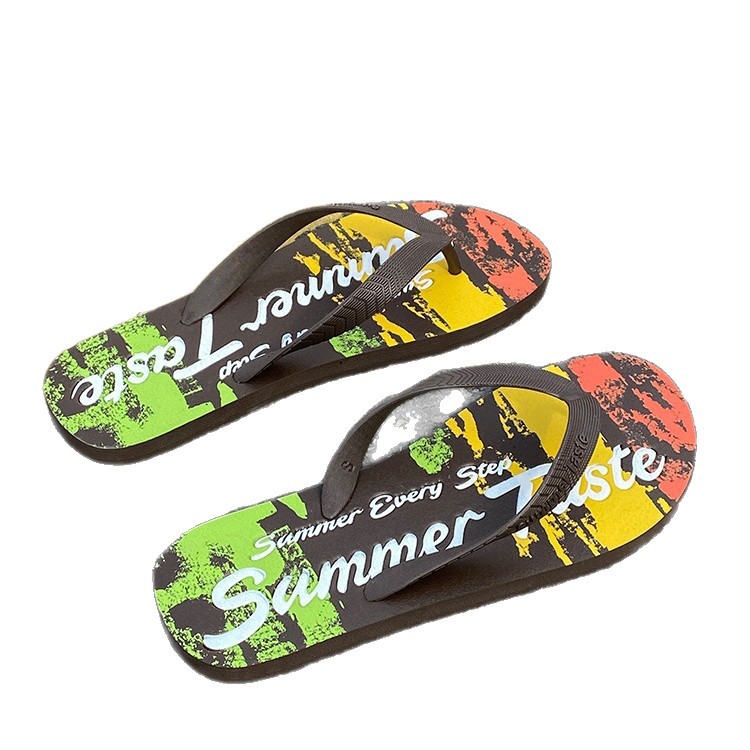 新款涂鸦人字拖男夏时尚外穿男士夹脚拖个性防滑拖鞋潮流沙滩凉鞋