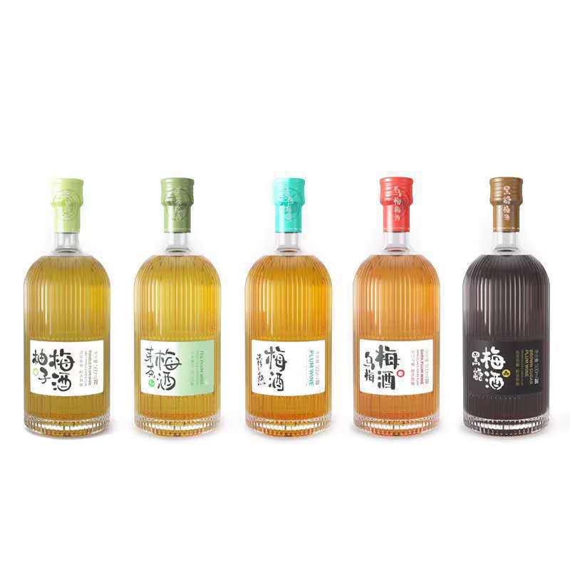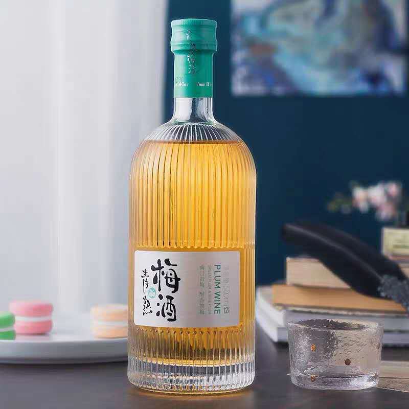 现货竖条纹玻璃空瓶厚底酒瓶灌装青梅饮料果酒空瓶一斤装