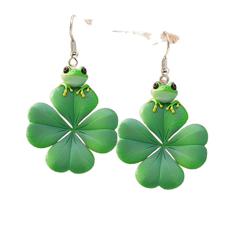 原创设计跨境新品亚克力圣帕特里克节日派对绿色的四叶草瓢虫耳环
