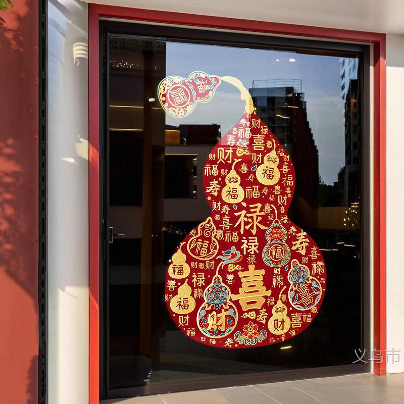 2026过马年彩色福禄窗花新年静电玻璃门葫芦春节贴纸商场橱窗装饰