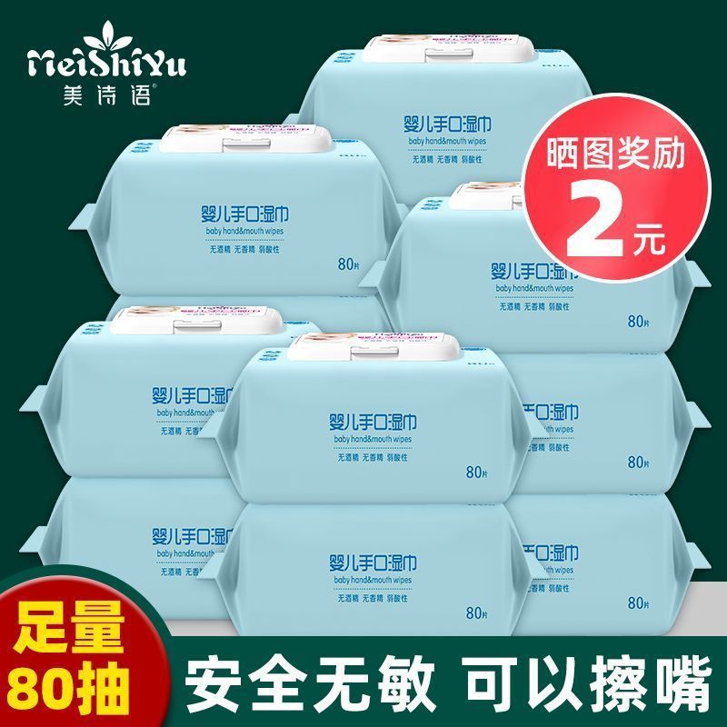 特价婴儿湿巾80抽手口屁带盖湿巾纸美诗语批发新生儿宝宝家用湿纸