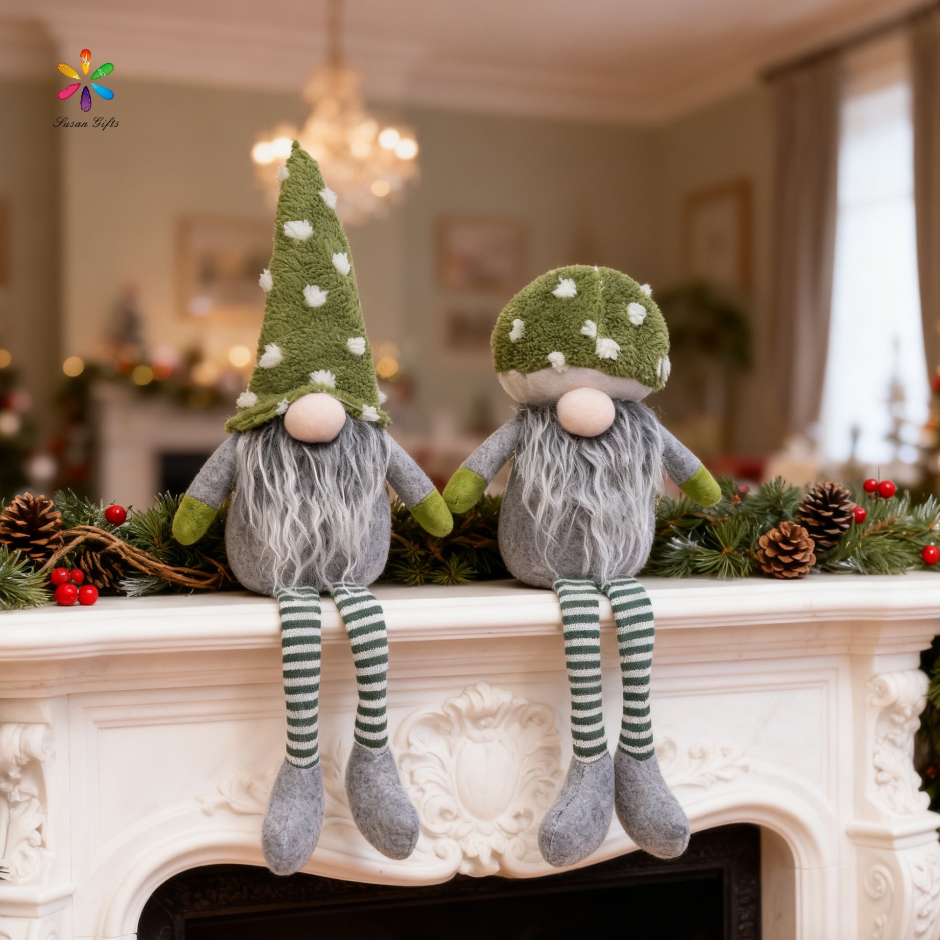 批发圣诞地精鲁道夫矮人情侣写实大鼻子条纹格子坐姿圆底节日装饰