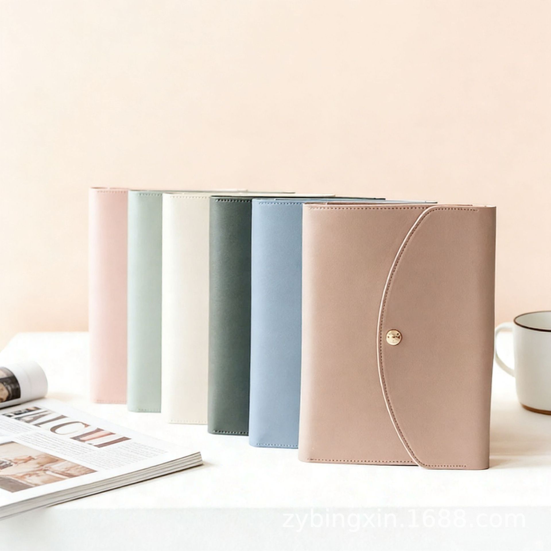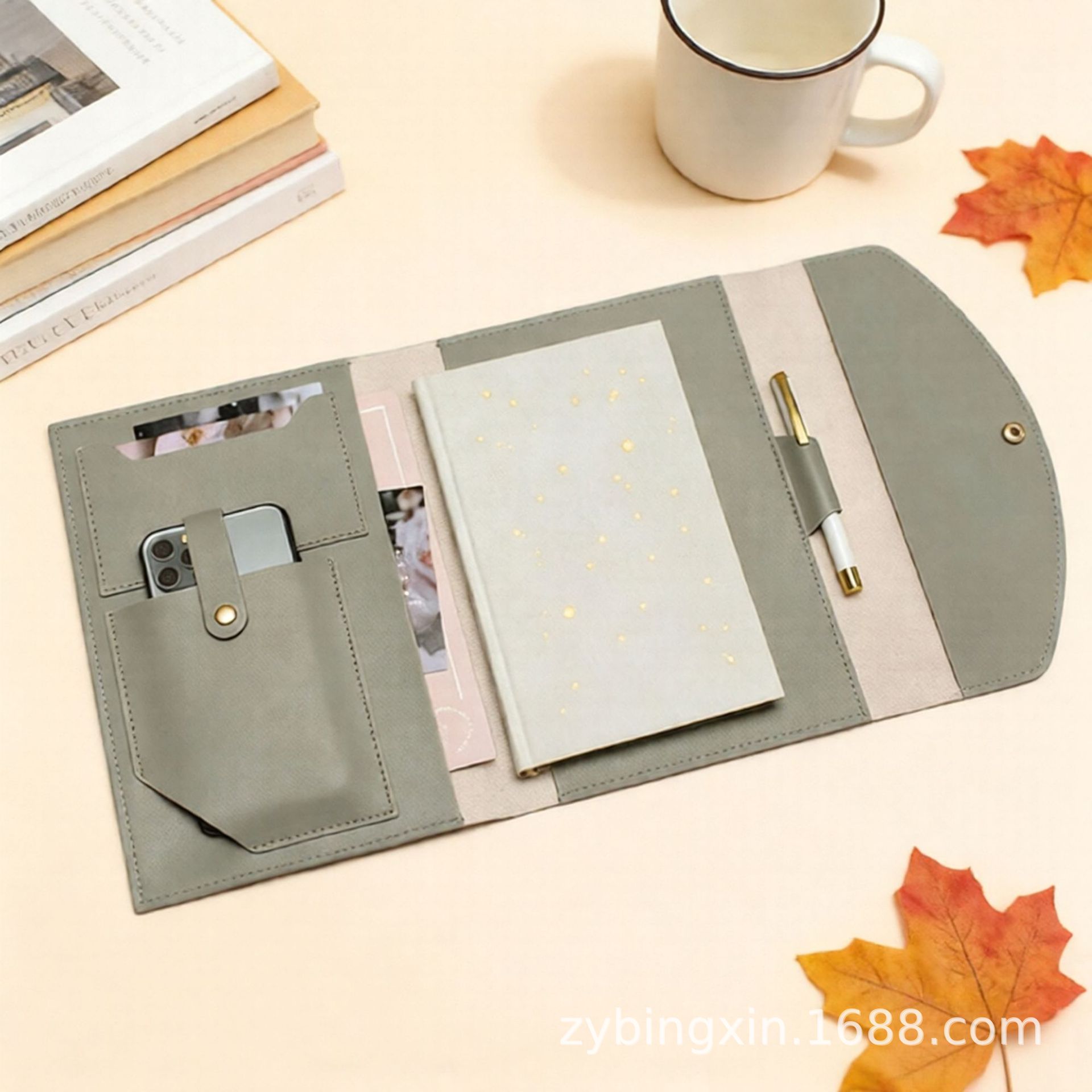 办公通勤会议三折叠记事本皮套手机插袋笔袋A5活页笔记本通用收纳