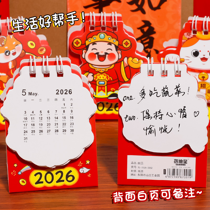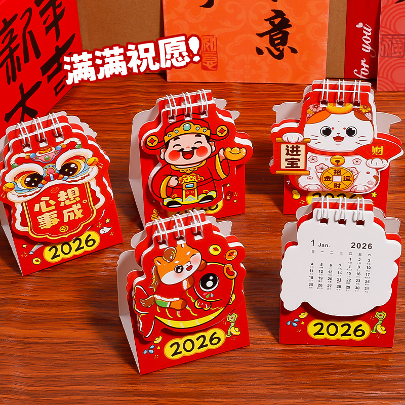 2026新年台历可爱卡通招财猫桌面小摆件学生计事打卡计划台历奖品