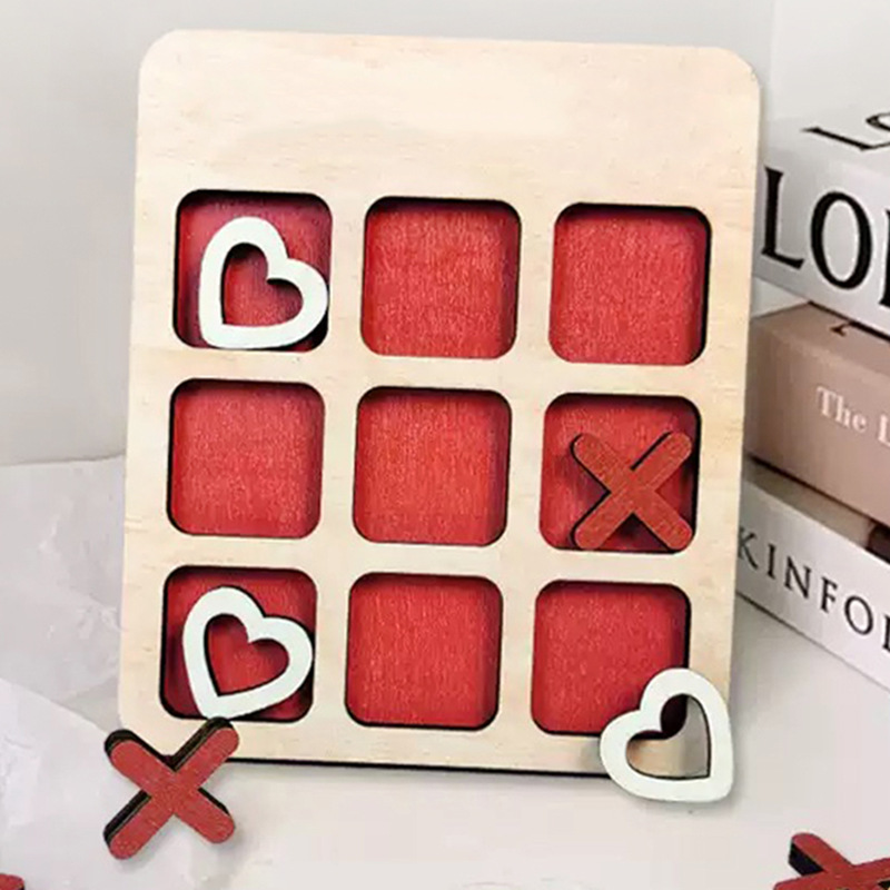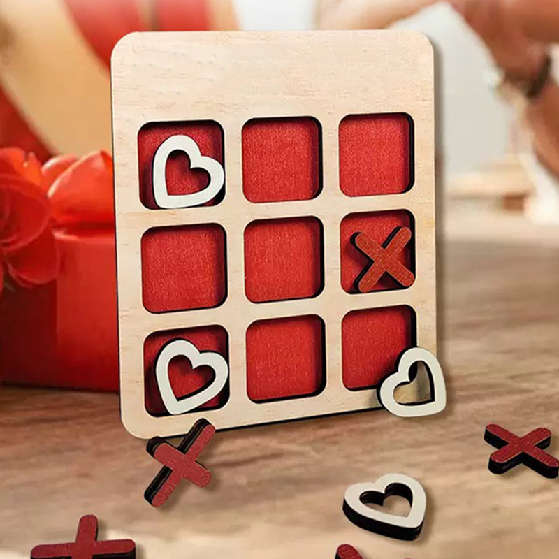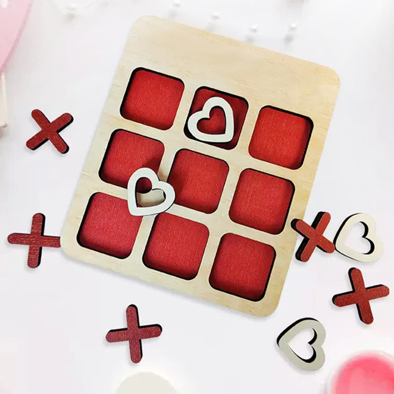 跨境爱心XO井字游戏棋盘情侣解闷道具情人节礼物木制品爱心XO棋盘