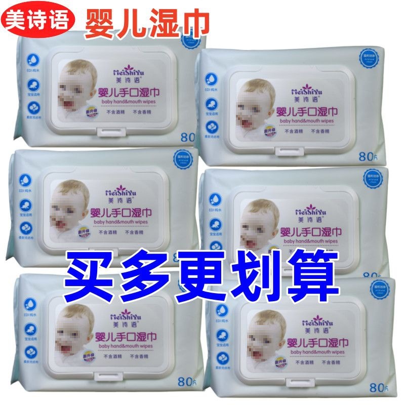 美诗语婴儿手口湿巾80片装带盖大包湿纸巾新生儿抽取式宝宝适用