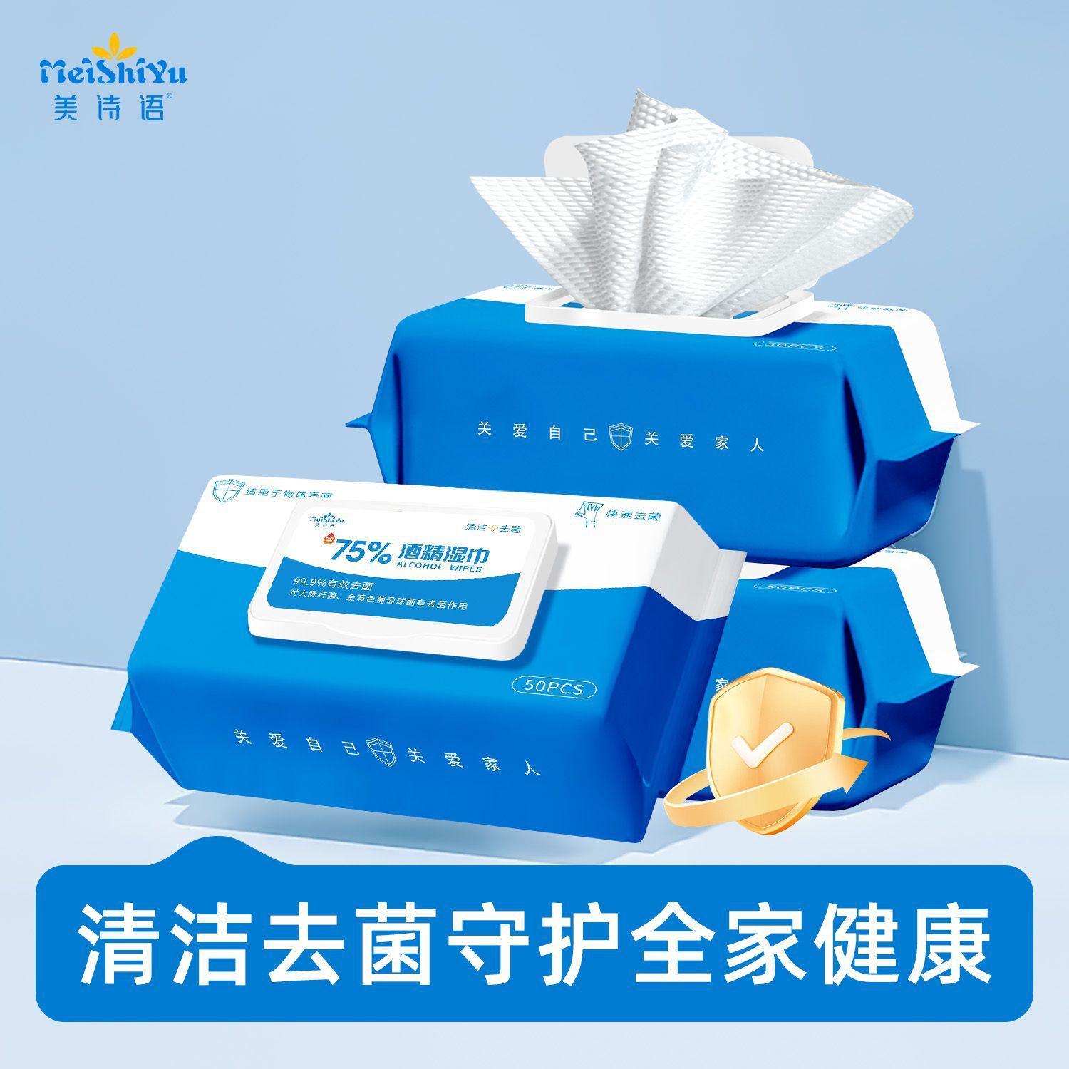 特价美诗语湿巾酒精消毒湿巾去菌抑菌儿童成人家用清洁防护免洗