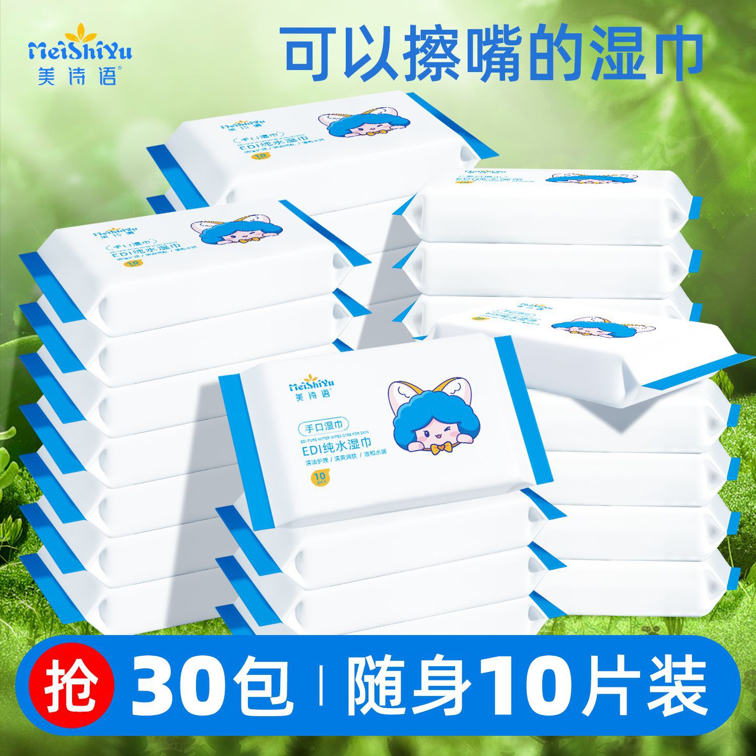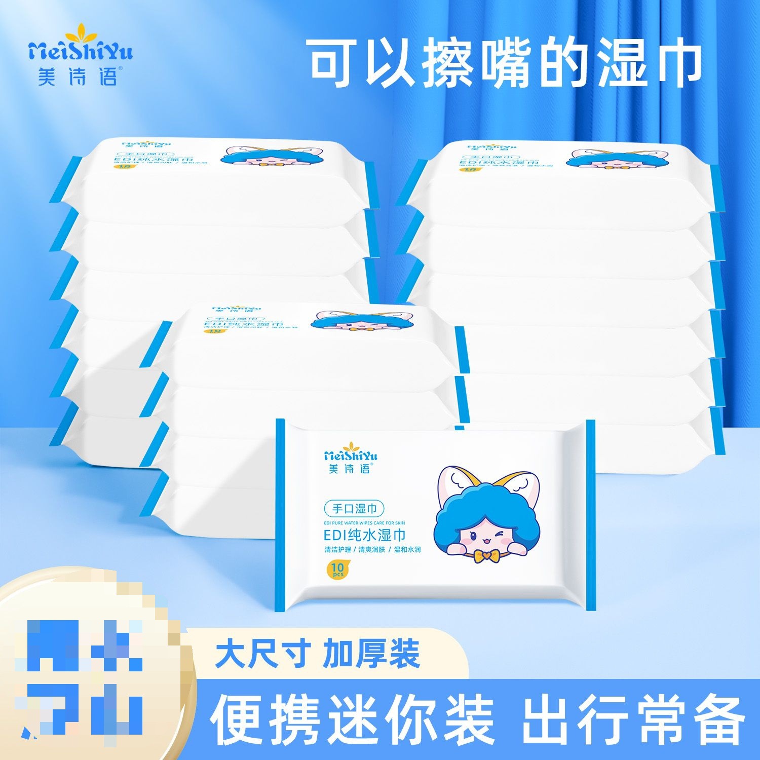 美诗语湿巾手口湿巾纸小包便携装随身装一次性10抽宿舍学生湿纸巾