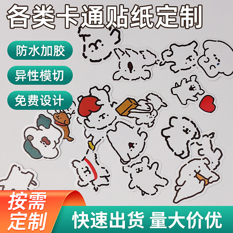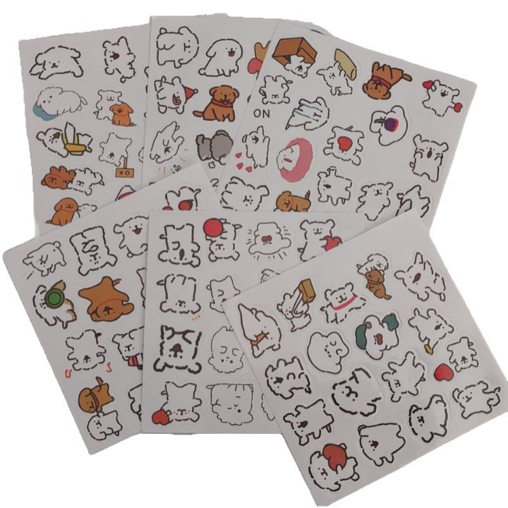 新款不干胶贴纸书包学生手账贴画手机壳防水贴纸可爱线条小狗贴纸