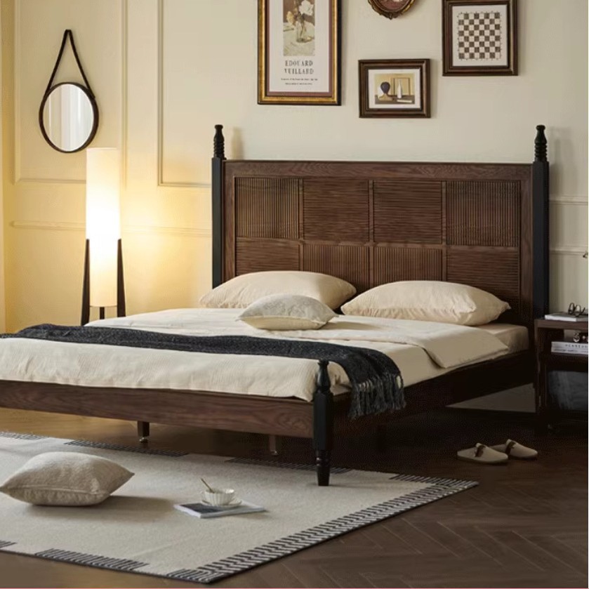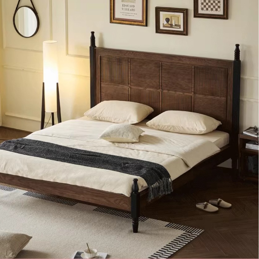 北美黑胡桃木法式复古实木床现代简约樱桃木中古风卧室双人床大床