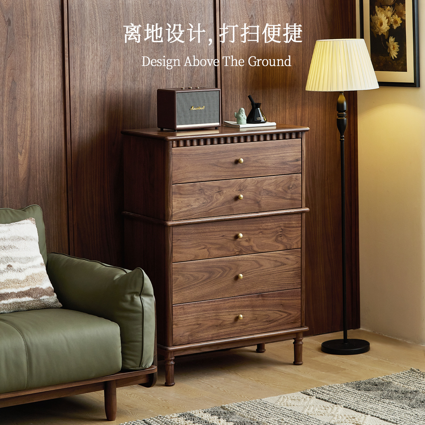 客厅实木斗柜黑胡桃木法式中古风置物柜轻奢高级感卧室收纳柜