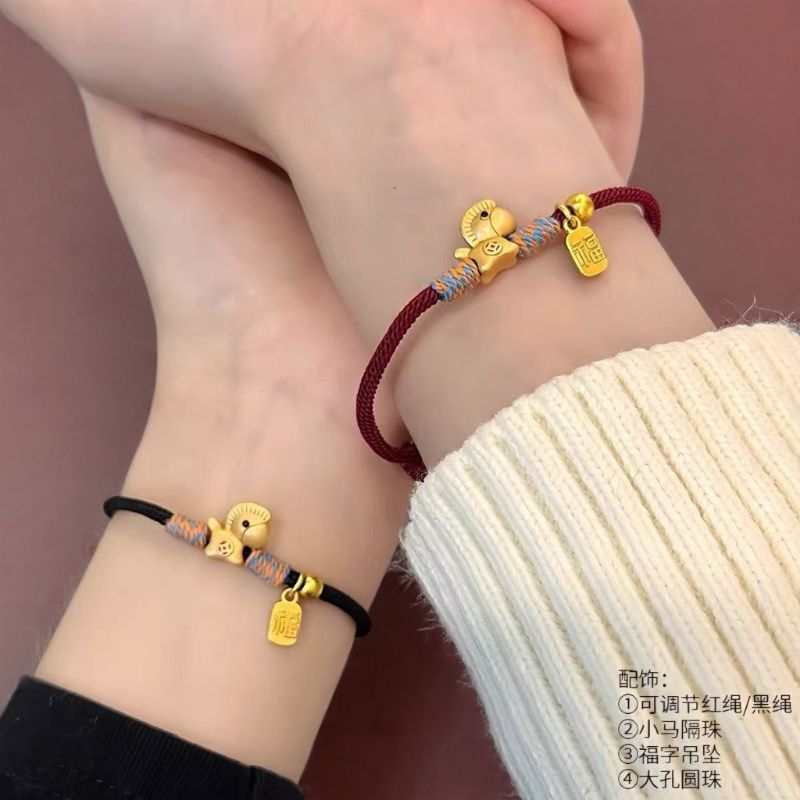 s999足银马上有钱小马红绳手链男女本命年生肖马年红色绳情侣手链