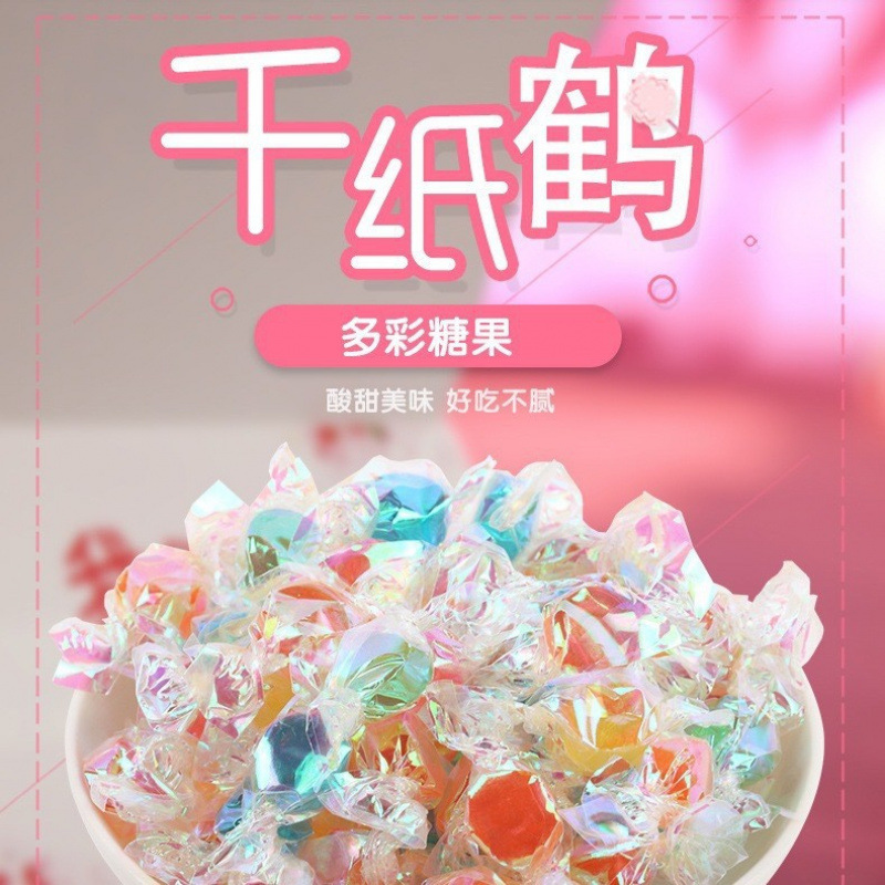 千纸鹤糖果随身水果糖批发糖网红彩纸糖批发小零食高颜值糖果