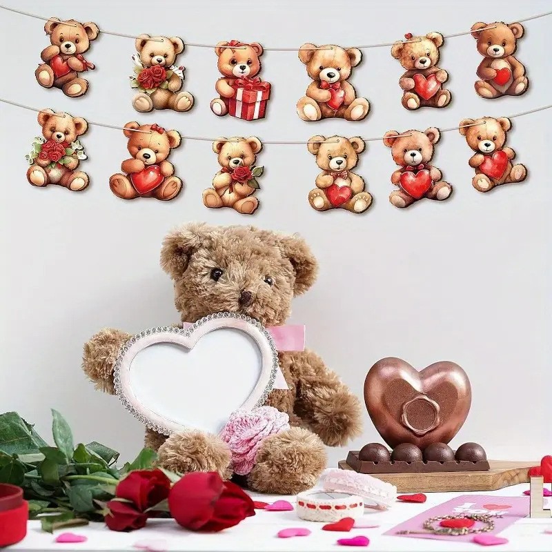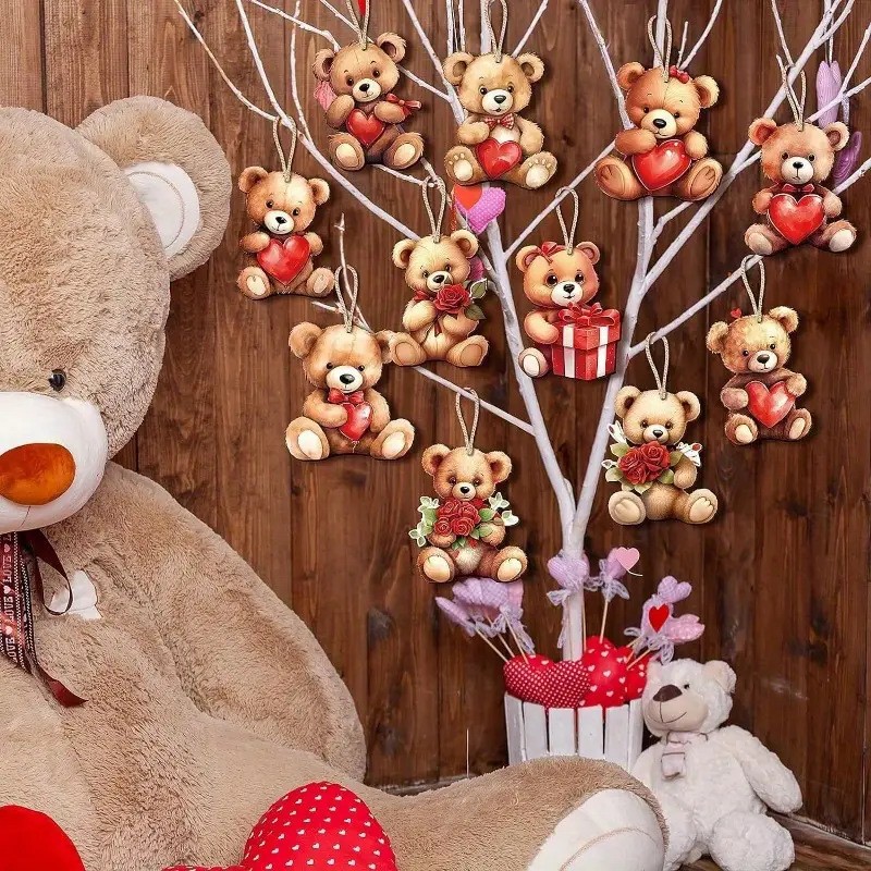 情人节新品木制爱心小熊装饰品套装情人节暖心礼物装饰