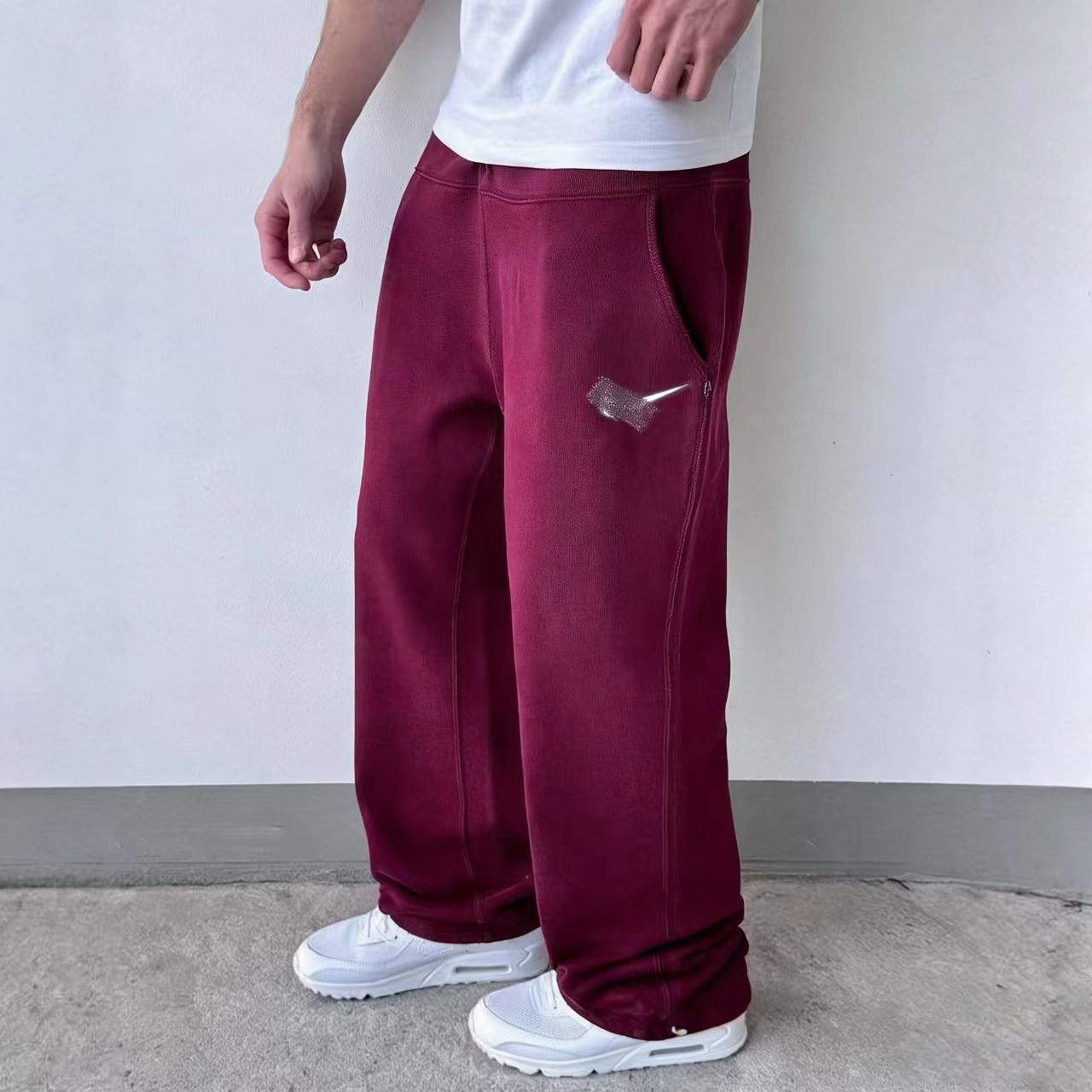 2025新款跨境欧美复古潮流鱼钩子宽松阔腿裤男女同款纯色百搭加绒