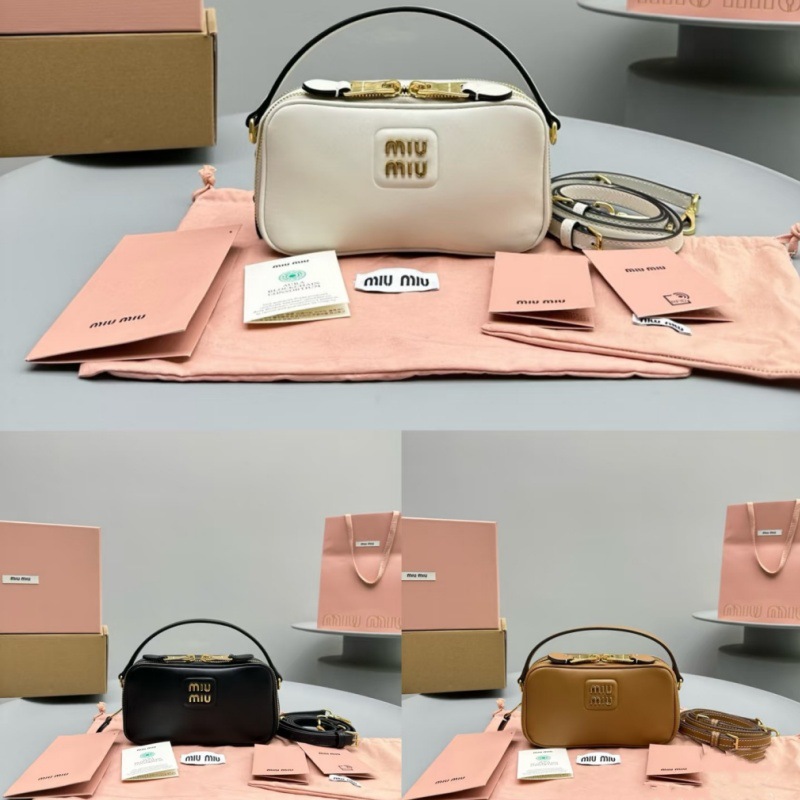 miu缪家新款小羊皮保龄球手提时尚相机小方包单肩斜挎波士顿女包