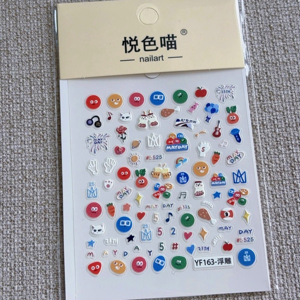 新款涂鸦美甲五月天应援卡通立体浮雕美甲贴纸防水指甲贴 diy装饰