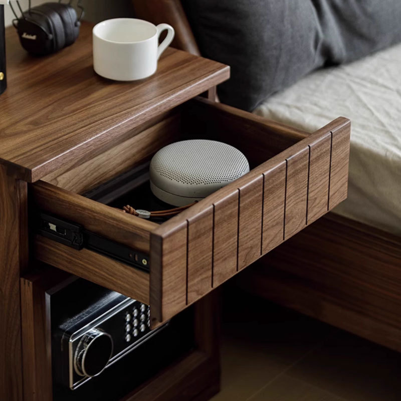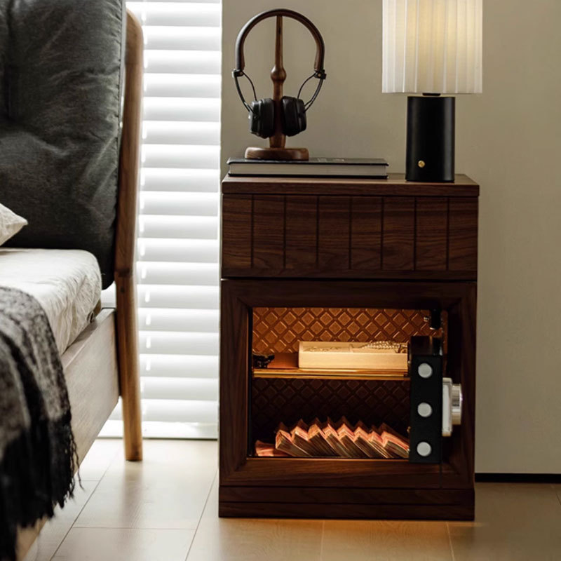 北美黑胡桃木床头柜保险箱一体储物柜小型家用实木保险柜带密码锁