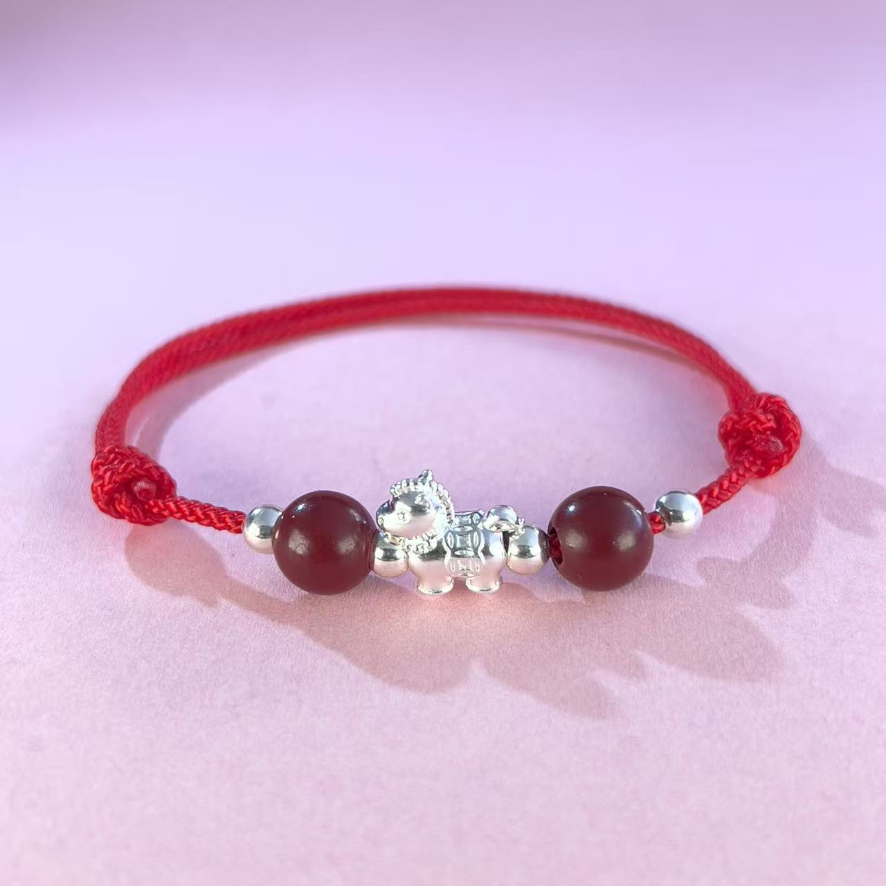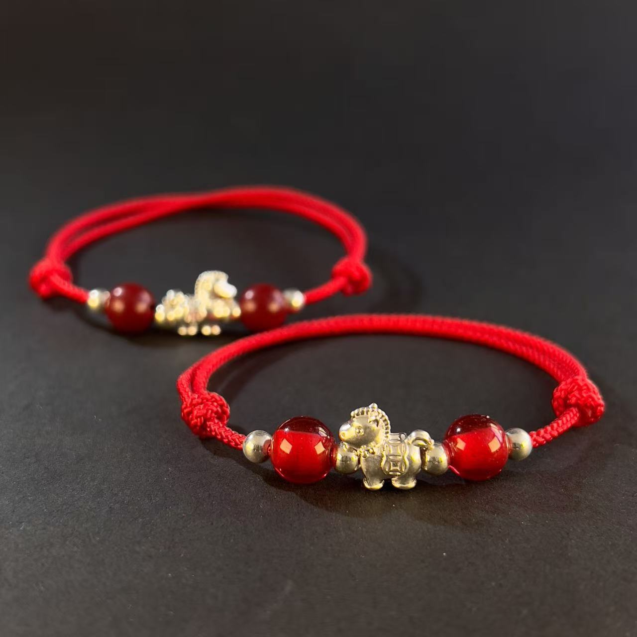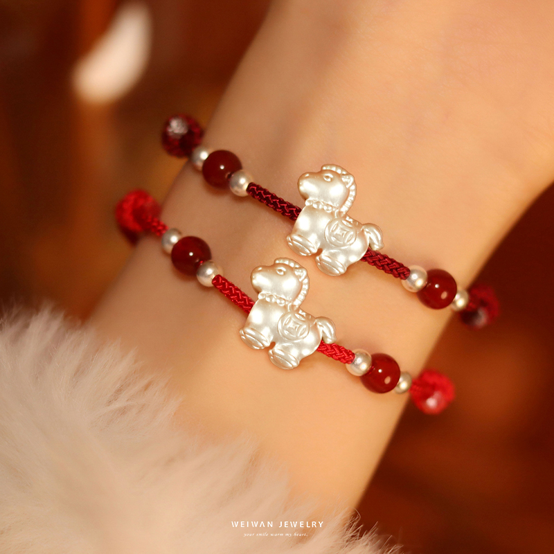 2026马年新款马上来财999足银红绳手链生肖马本命年编制手绳男女