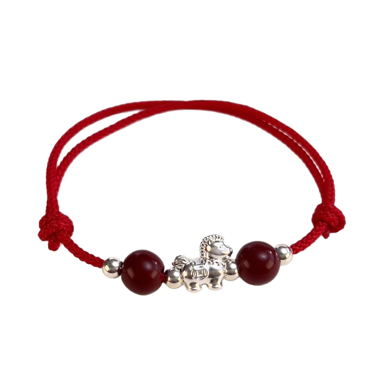 足银999马红玛瑙红手绳-礼盒 抽拉可调大号(手围16-19cm)