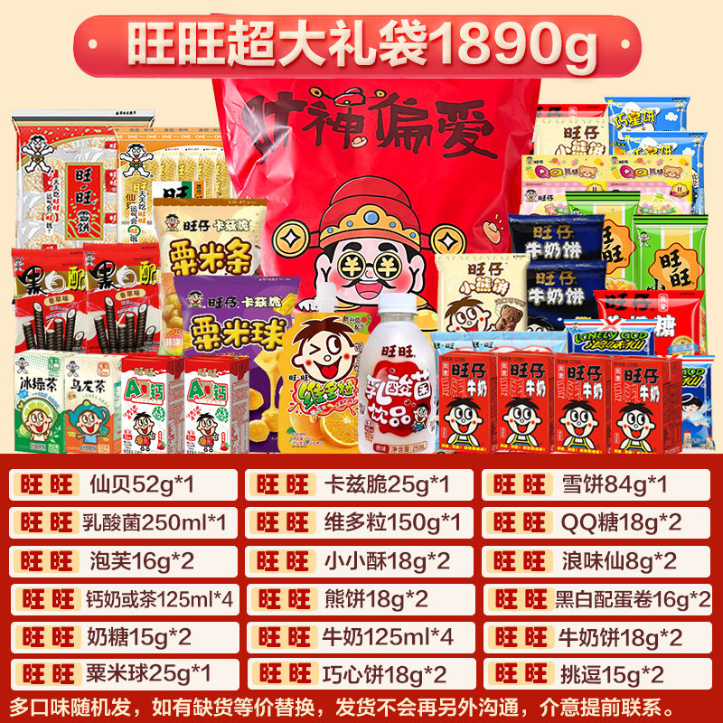 | 包装规格 | 旺旺礼盒装-全家福款-运气满旺 | 包装规格 | BIG巨型一个亿【5.36斤】超大礼袋 |