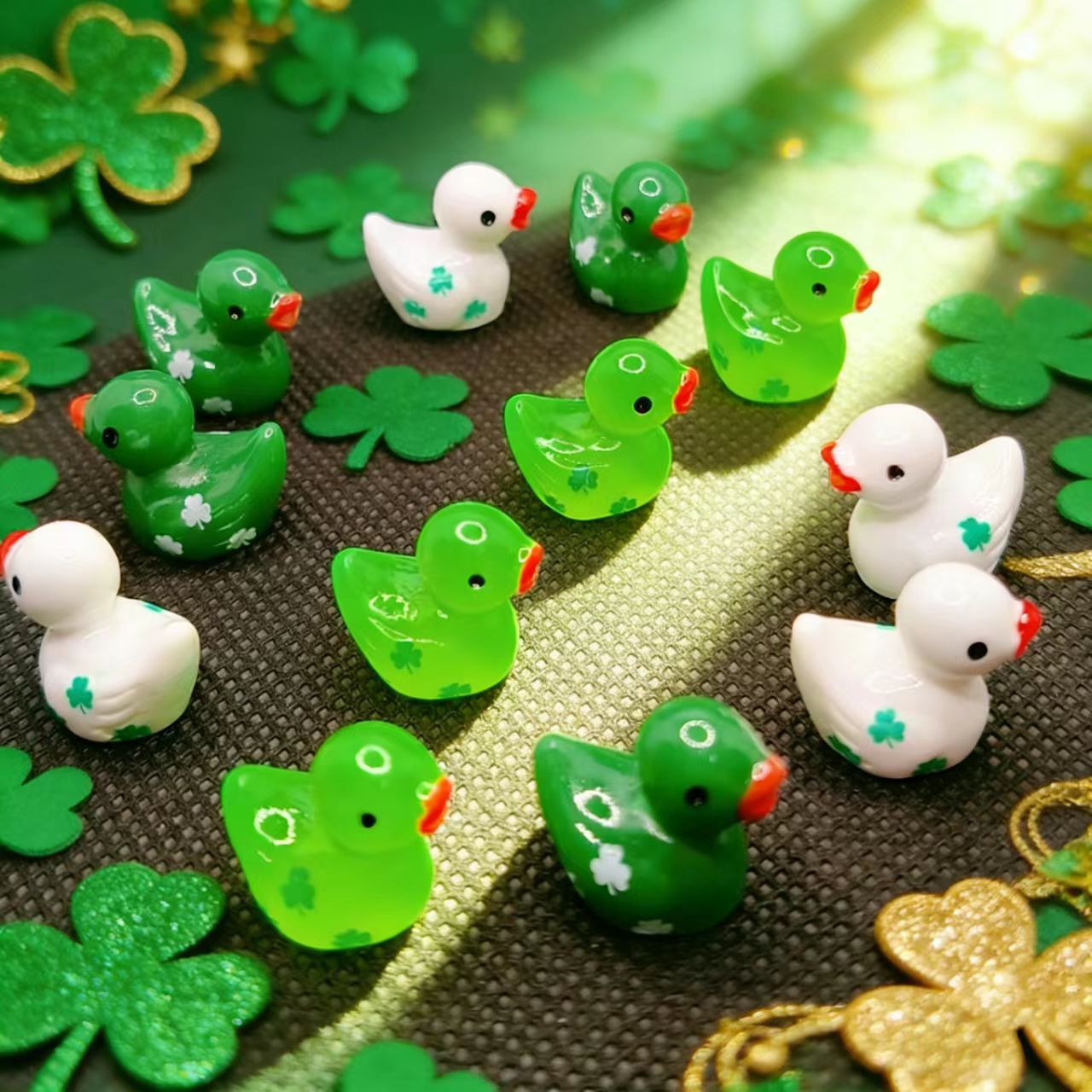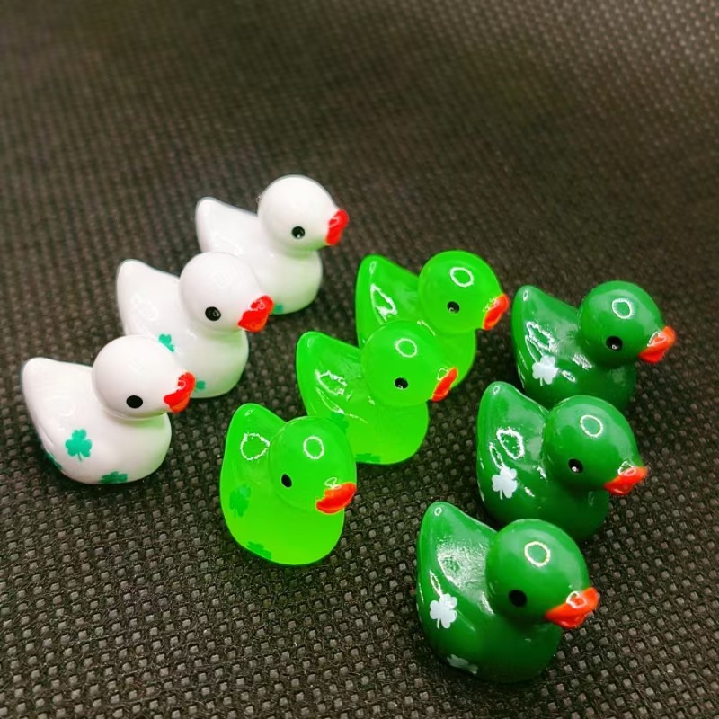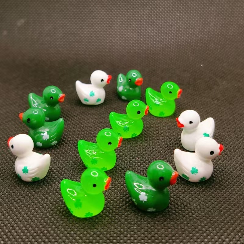 跨境圣帕特里克节三叶草印花小鸭子树脂小摆件工艺品diy饰品配件