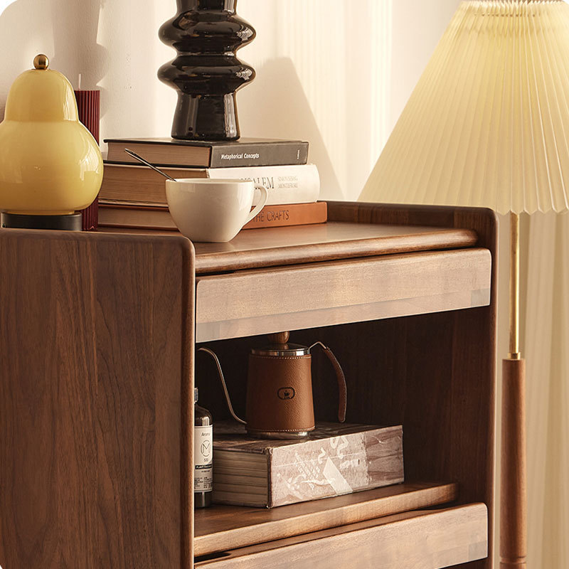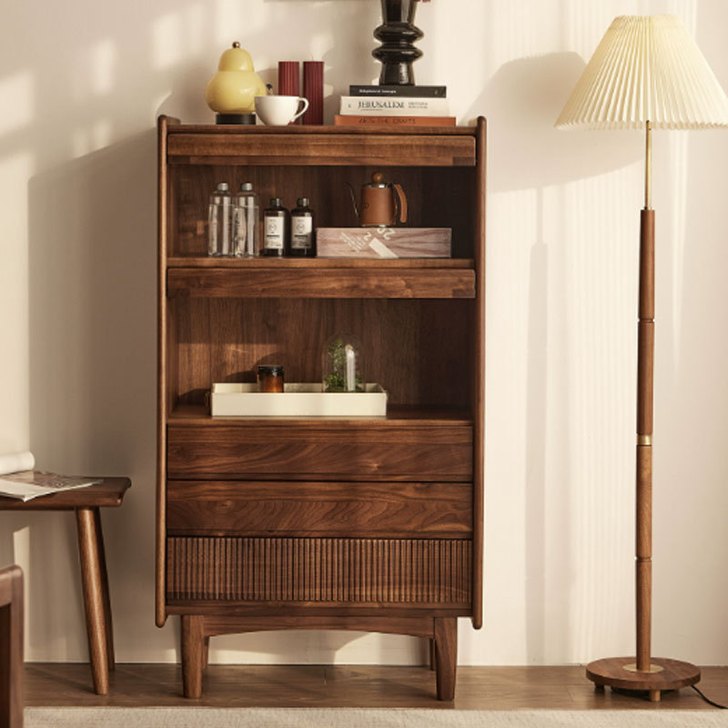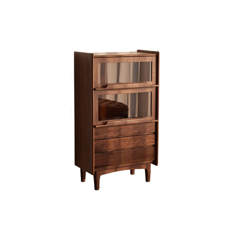 北美黑胡桃酒柜立体斗柜收纳北欧简约家用客厅玻璃展示实木储物柜