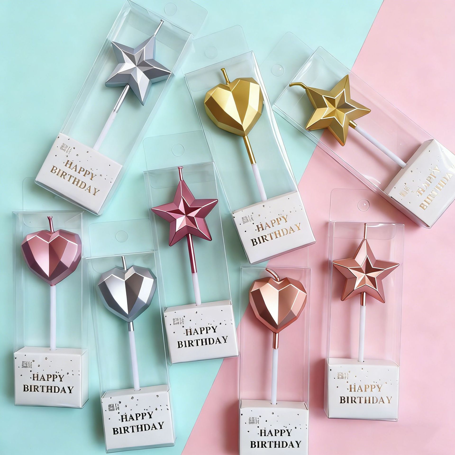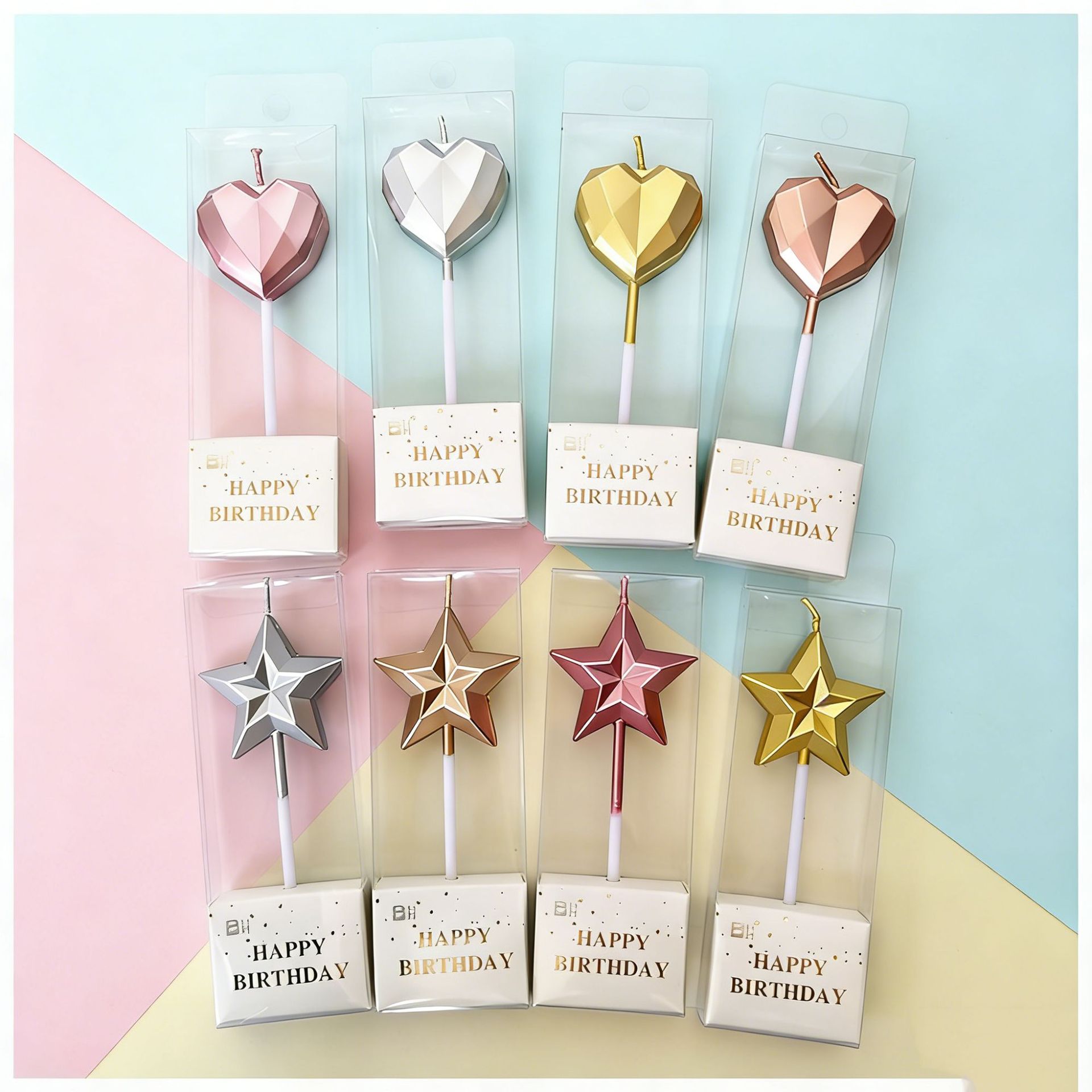 网红钻石爱心五角星生日蜡烛镀金星星心形浪漫烘焙蛋糕装饰摆件