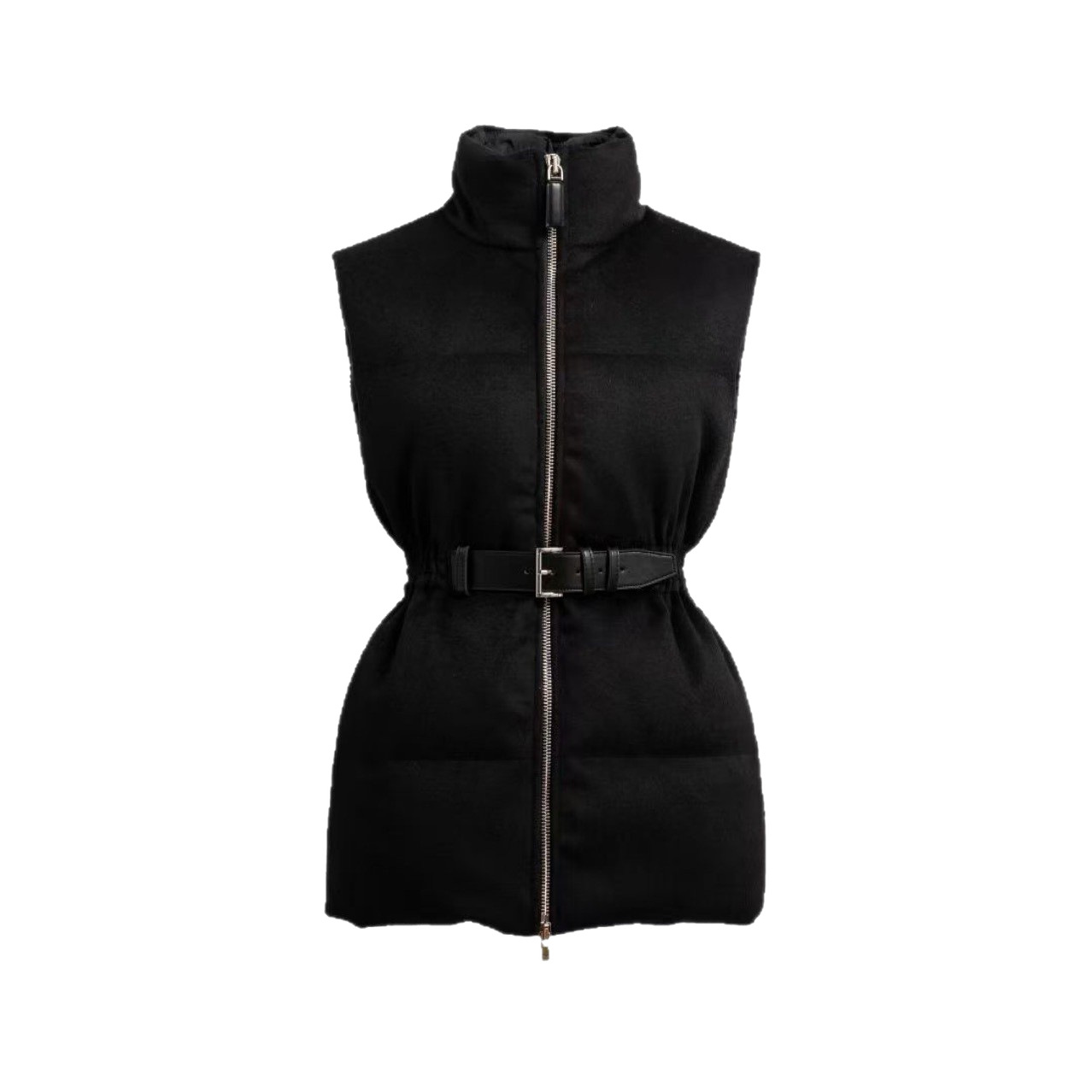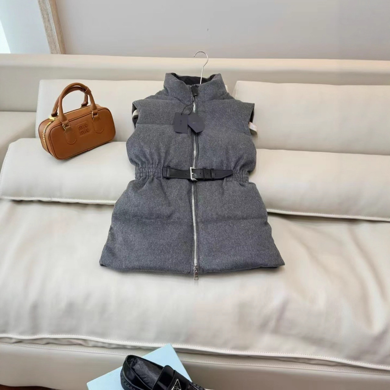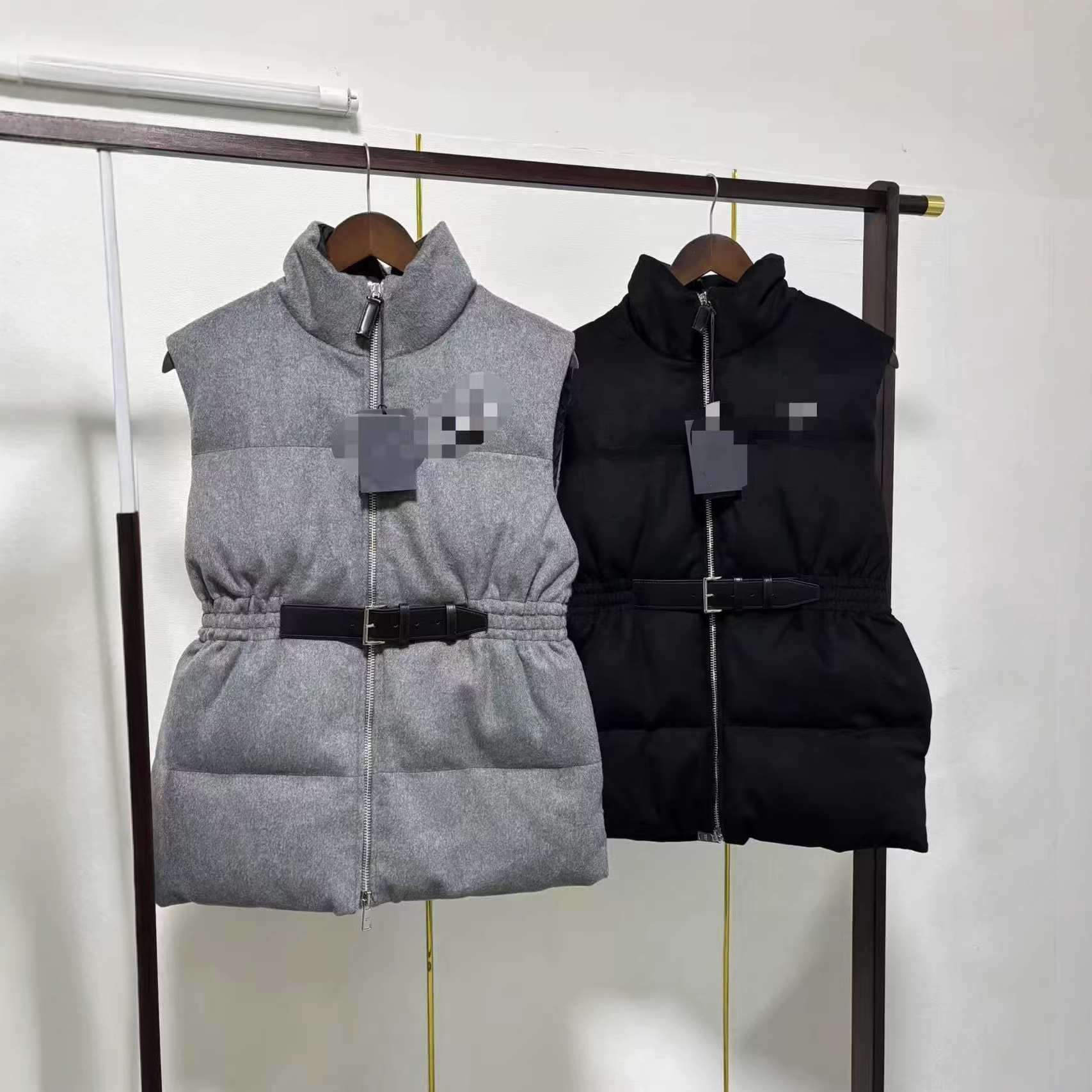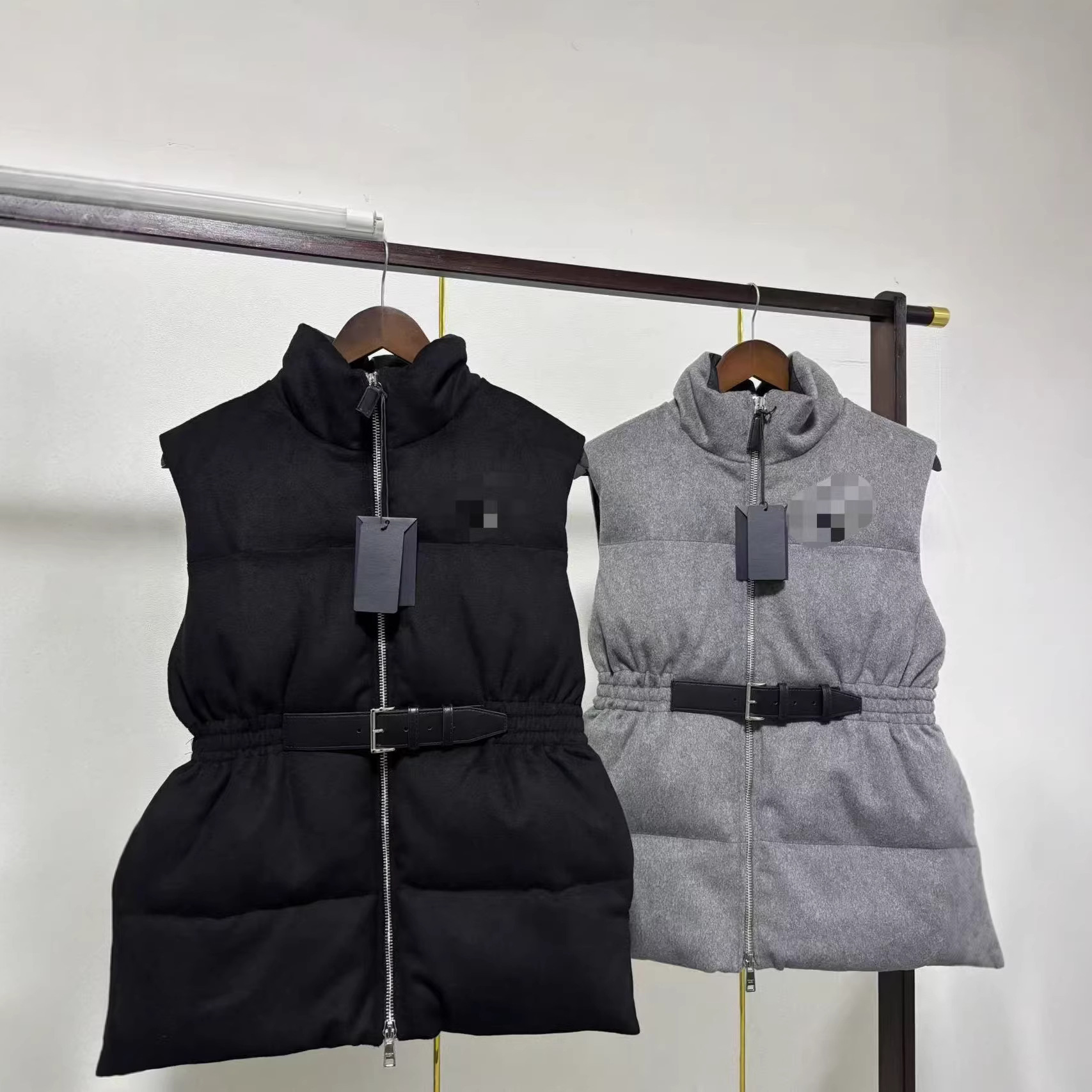 跨境严选高版本pd家2026新款时髦立领羊毛皮带收腰羽绒马甲款外套