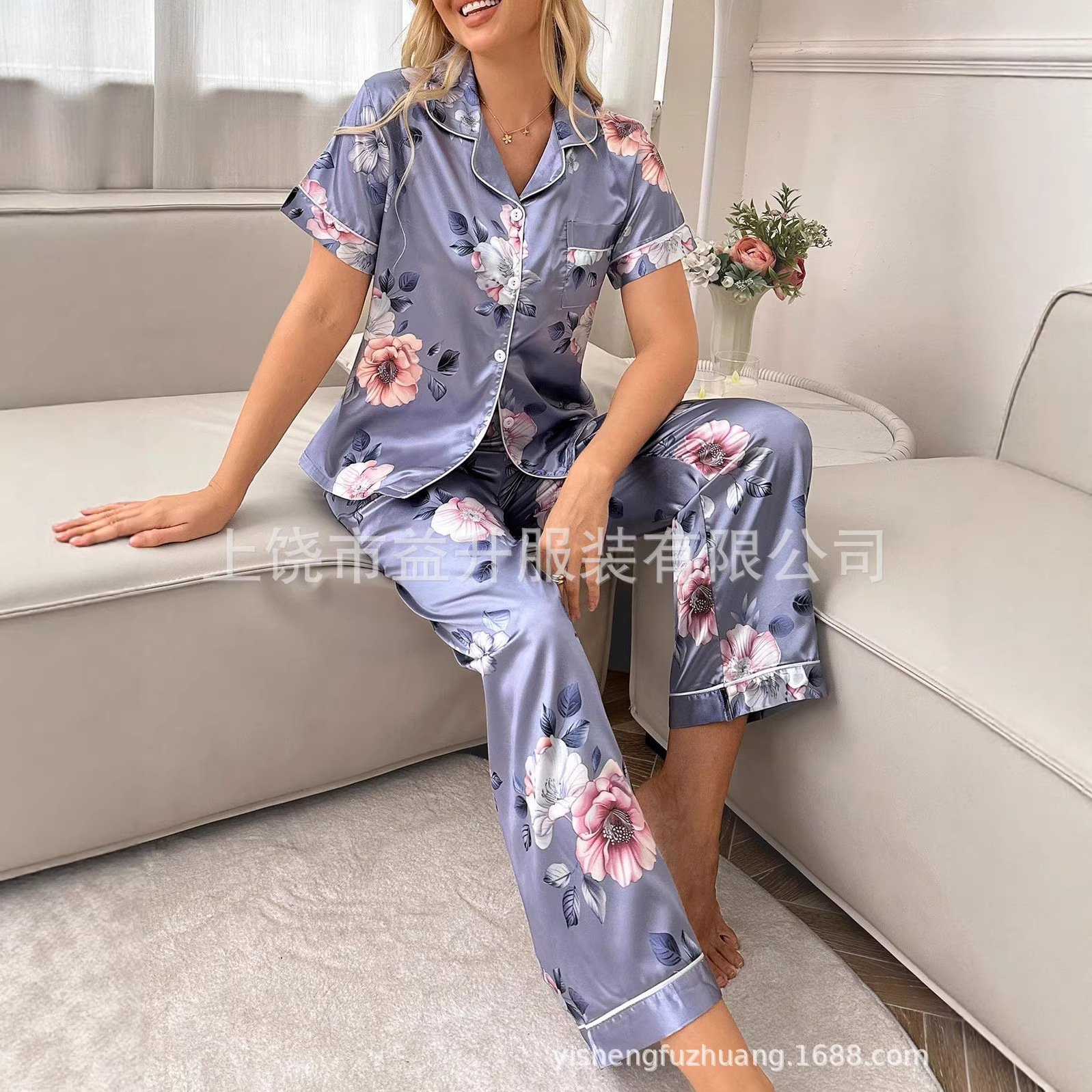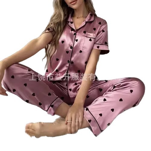 春秋新款休闲可外穿开衫睡衣套装 时尚休闲短袖长裤居家服套装