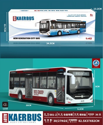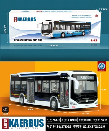 1:42新能源巴士仿真合金车模灯光音效回力多门可开儿童玩具