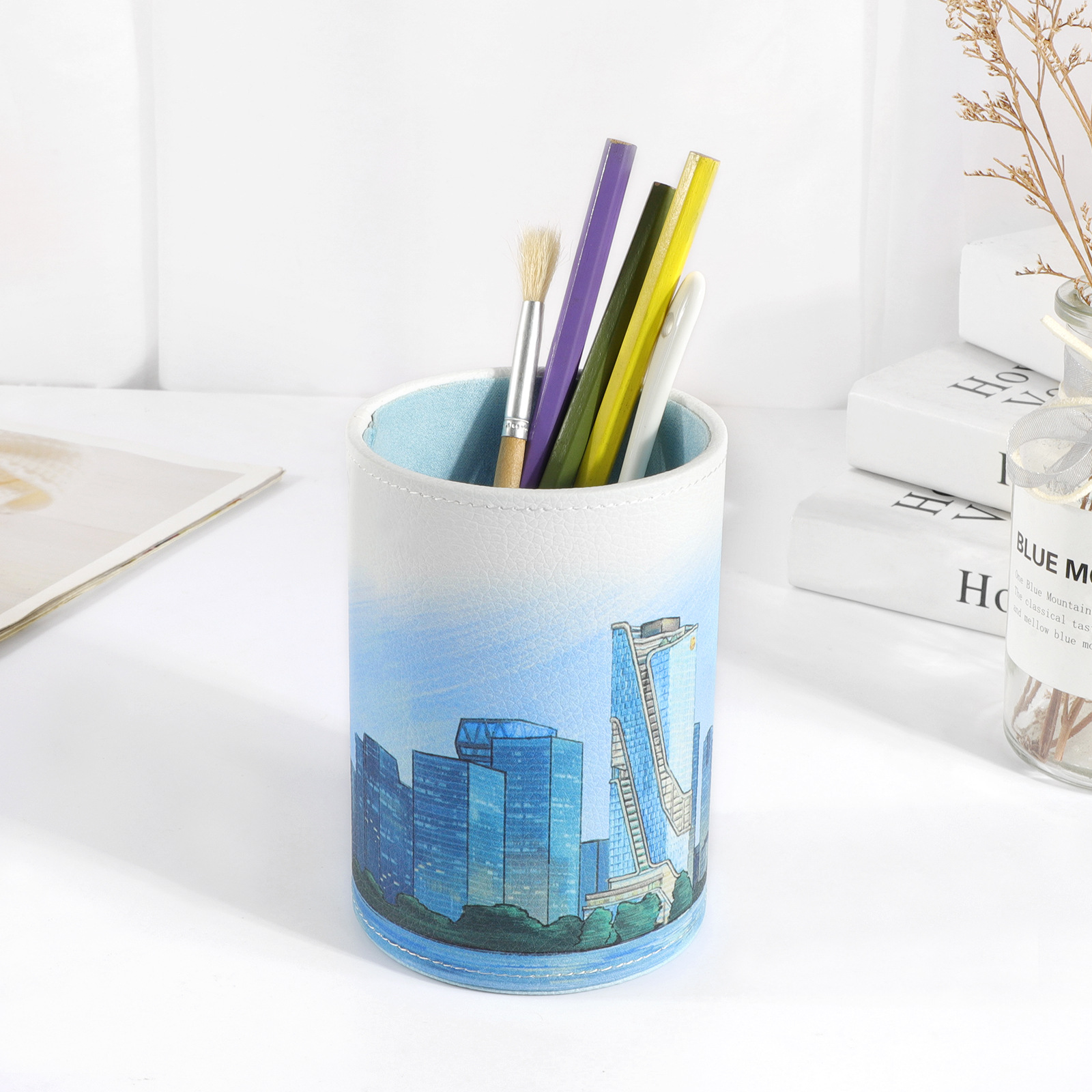 居家办公收纳笔筒盒彩虹创意时尚真皮防皮任意自制来图来样做