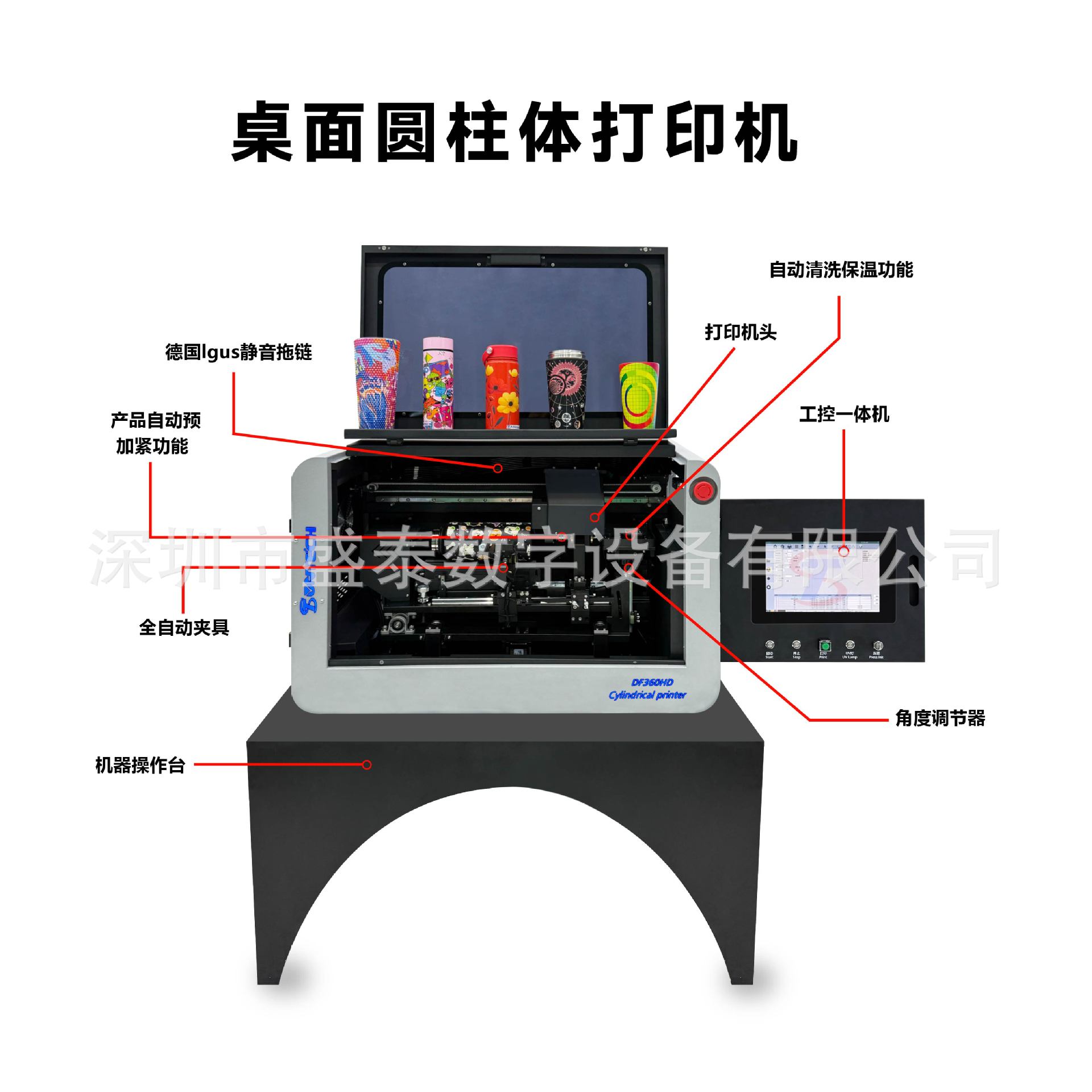 3Duv打印机桌面圆柱打印机 保温杯/玻璃瓶高精度印刷机DF360HD