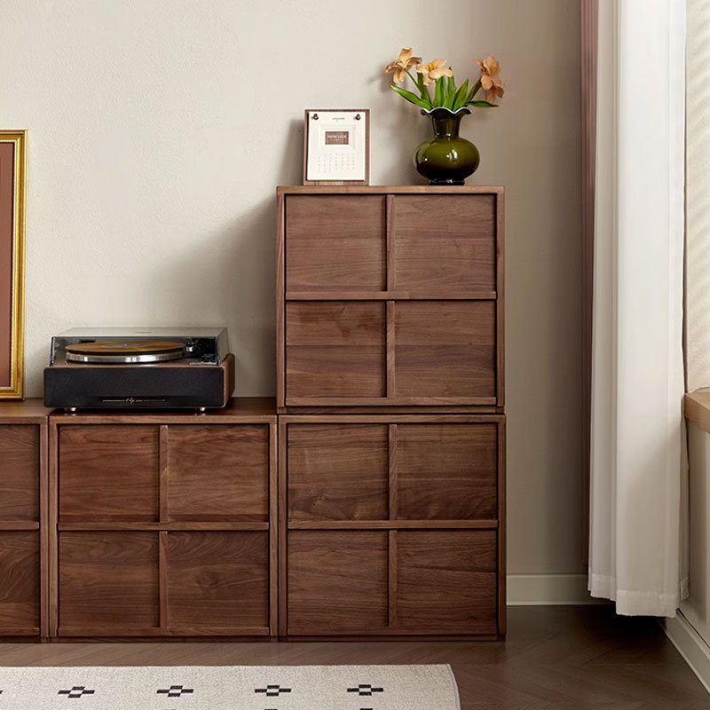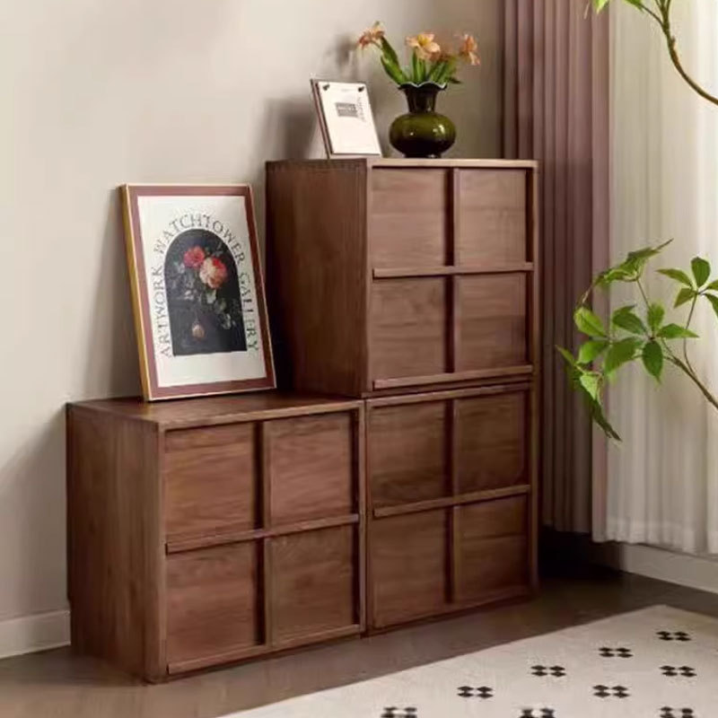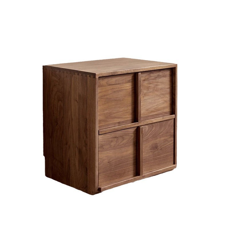 中古风北欧骨骼线条柜现代简约日式原木黑胡桃木组合柜实木床头柜