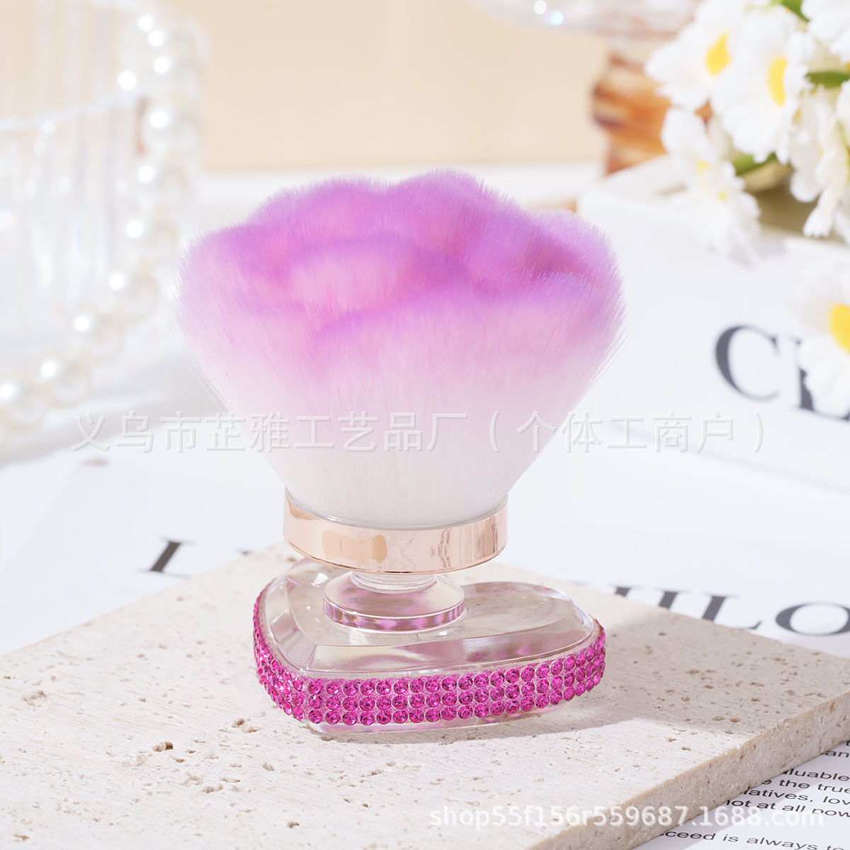 跨境镶钻高级感多功能单支美甲粉尘散粉刷粉底刷化妆腮红刷美妆