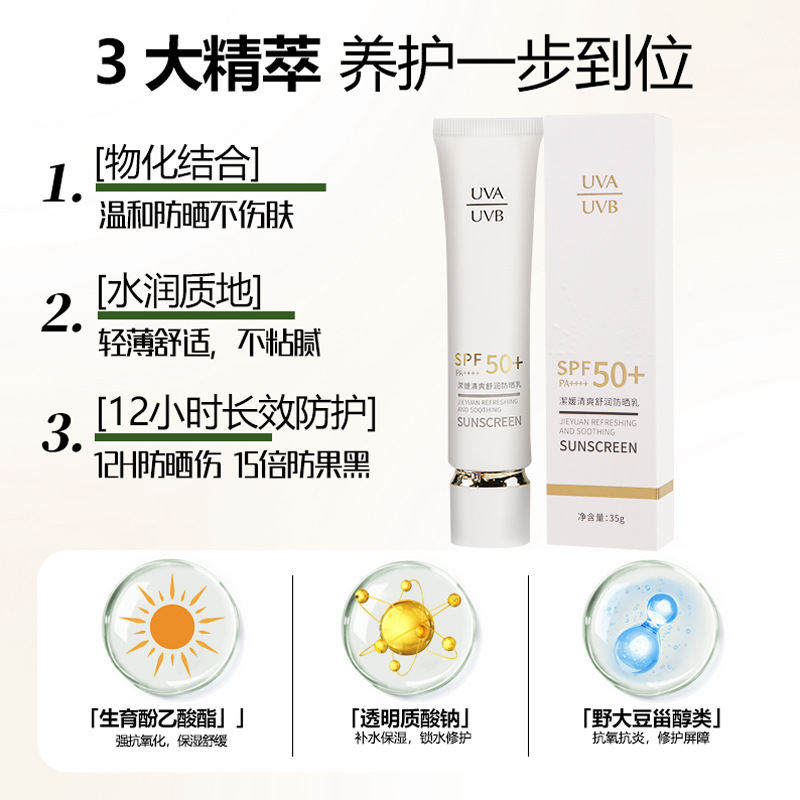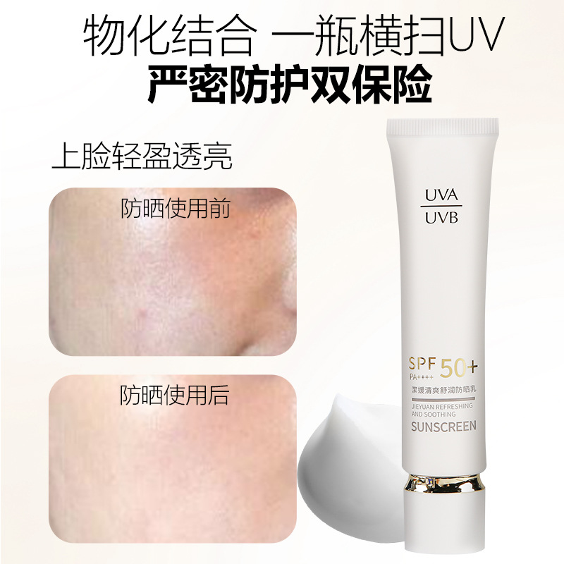 潔媛清爽舒润防晒乳SPF50+防水防汗全脸防紫外线清爽高倍防晒霜