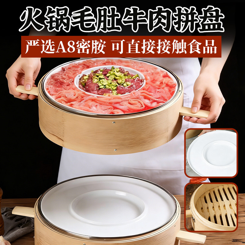 网红笨小孩菜市火锅同款蒸笼屉牛肉鸭肠拼盘半斤八两专用套装商用