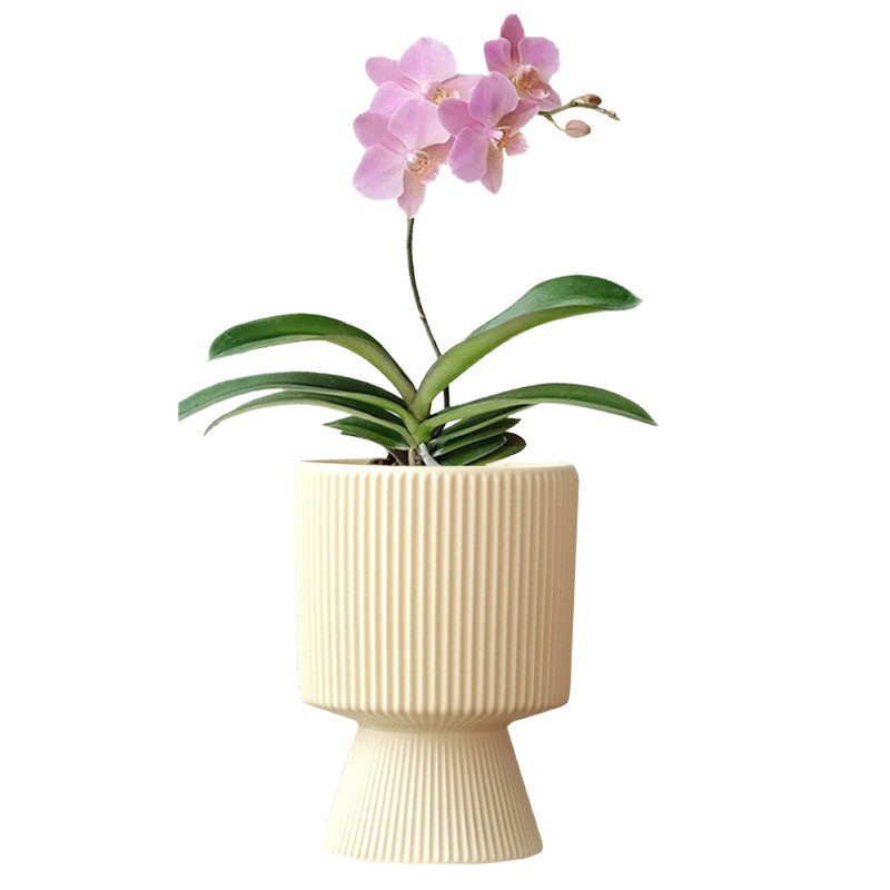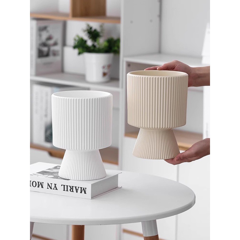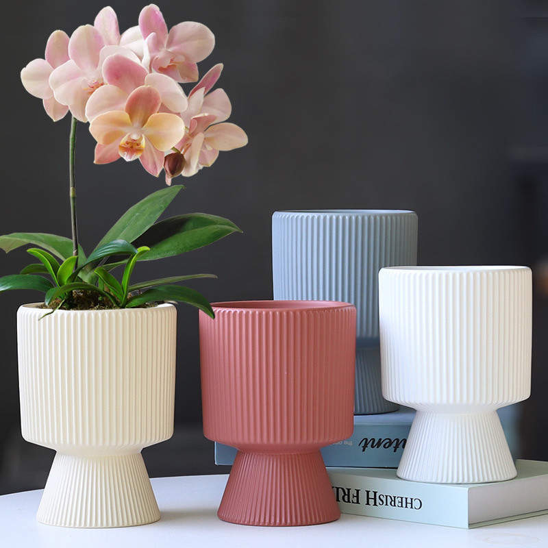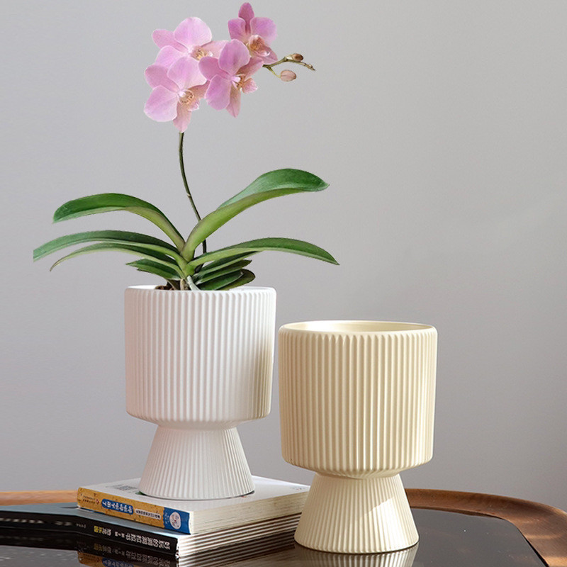 花盆陶瓷北欧风创意高脚竖纹阳台室内绿萝蝴蝶兰花盆绿植盆吊兰盆