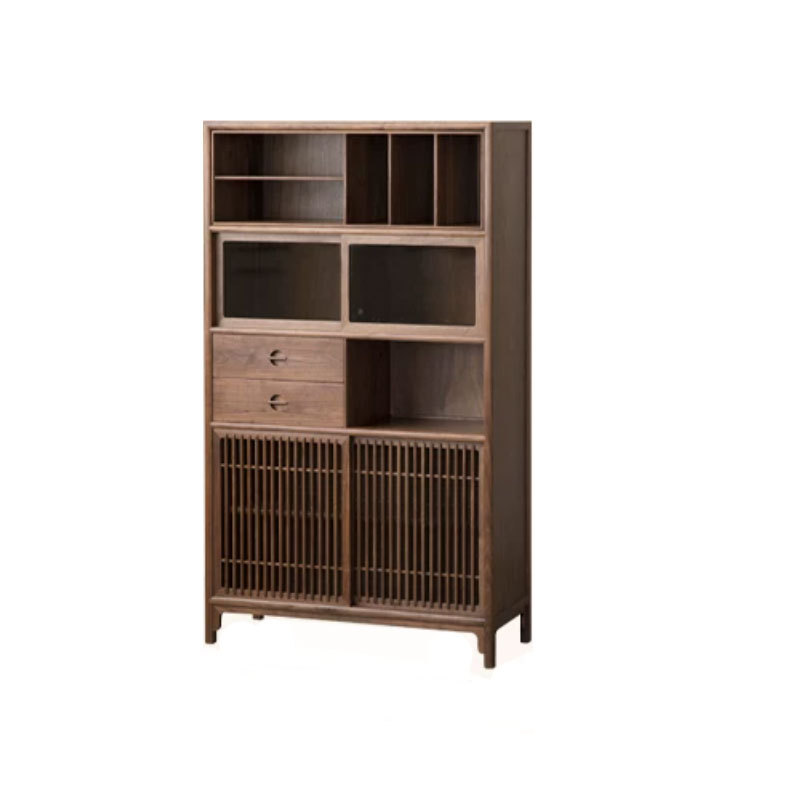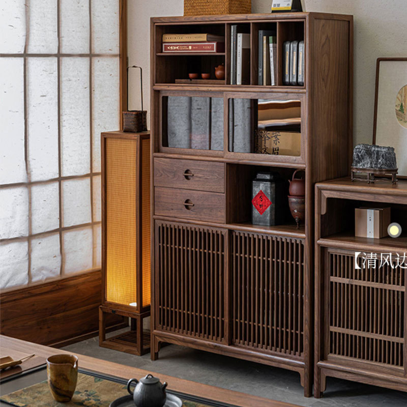 新中式黑胡桃木多宝阁博古架实木书柜格子柜茶室边柜置物架展示柜