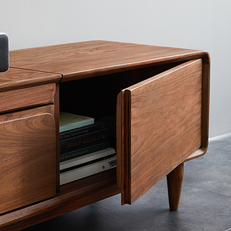 厂家直销实木家具北欧黑胡桃木激光电视柜现代简约伸缩视听柜