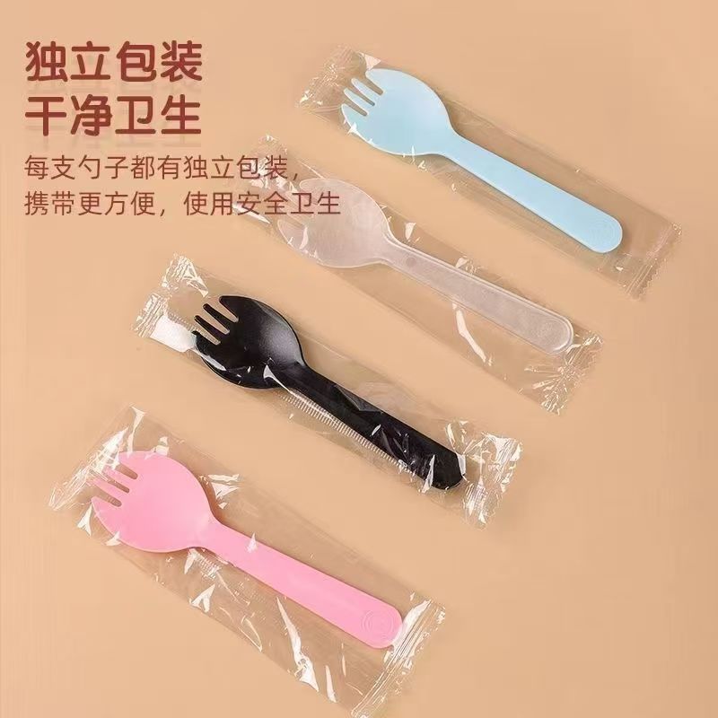 塑料一次性勺子独立包装商用蛋糕叉水果叉水果捞冰淇淋勺食品级