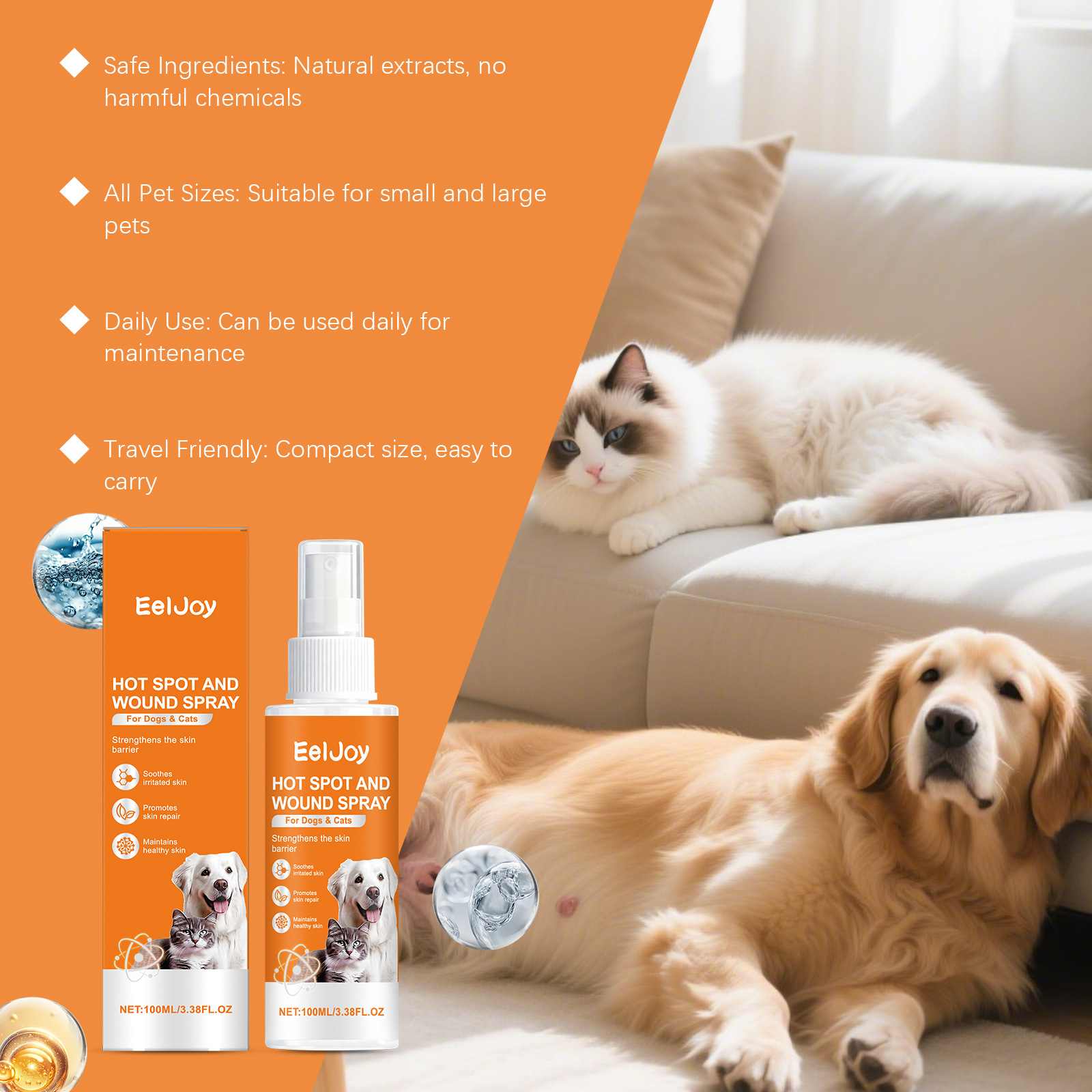 EELJOY 宠物皮肤护理喷雾 猫狗皮肤清洁舒适温和日常护理喷雾