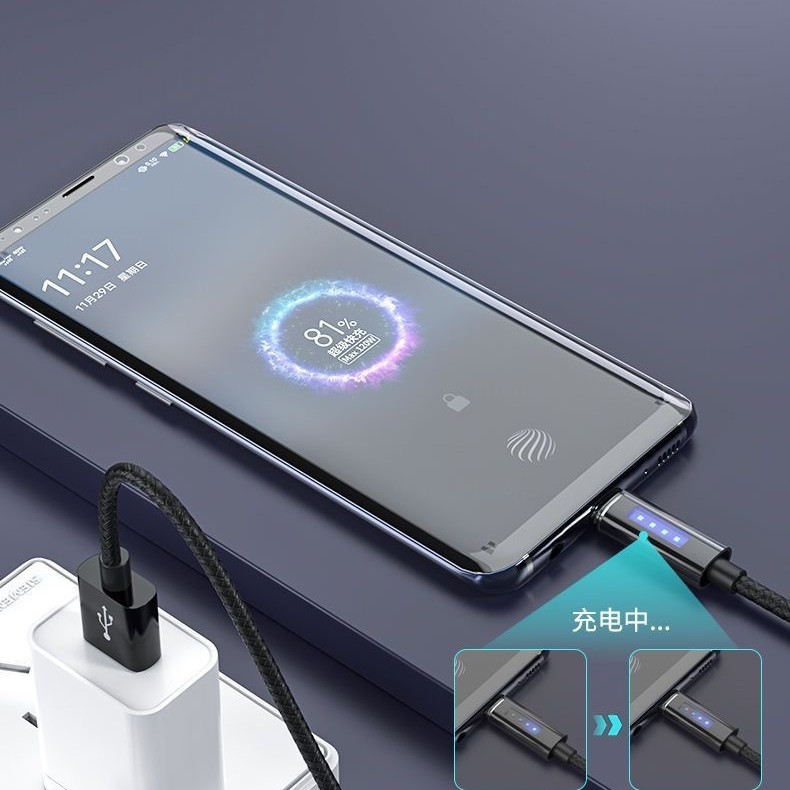 快充智能充满自动灭灯数据线适用type-c华为荣耀手机充电线闪充